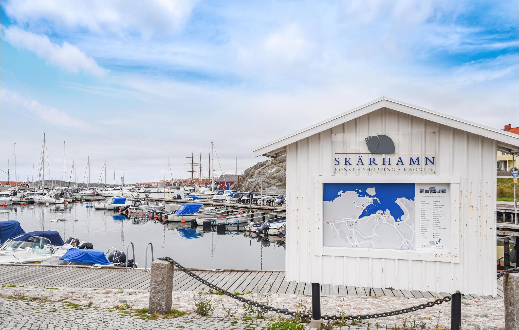 Gennemrenoveret del af hus ved vandet med egen bade- og fiskebro, fantastisk udsigt over Hamnefjorden. Åben planløsning, sovehems, stejl trappe. Tæt på Akvarellmuseet og mange aktiviteter. Ejeren fortæller: I Skärhamn med butikker, restauranter og hyggeligt torv, er det let at føle sig hjemme. Her er rygraden fiskeri og skibsfart, en by hvor der altid sker noget. I kan tage færgen til Åstol og Dyrön, som er små samfund på øer, hvor der ikke kører biler.
