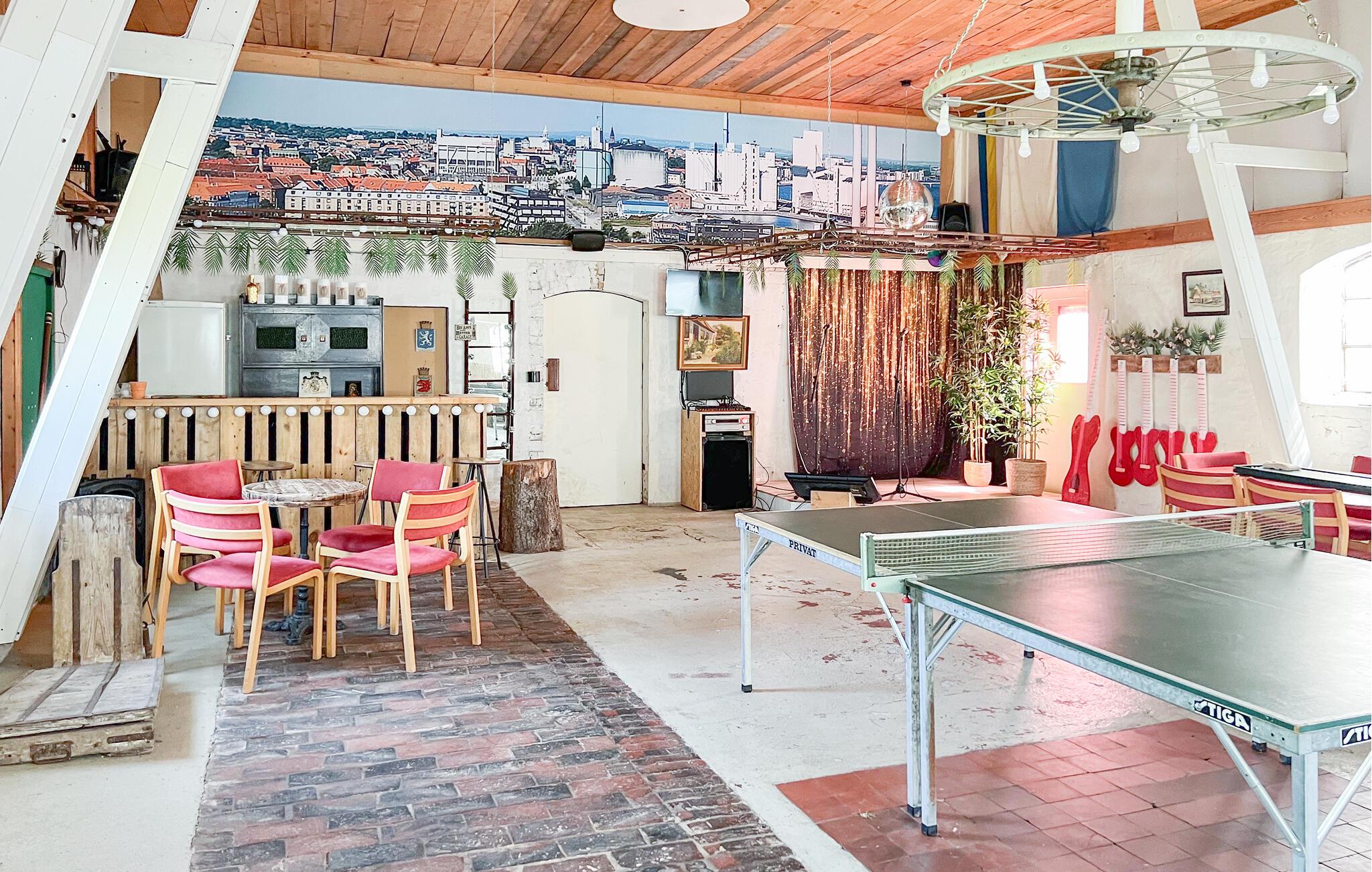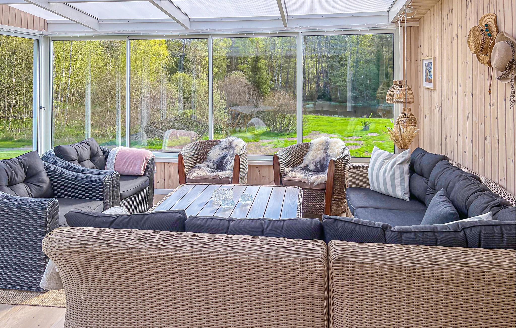 I denne bolig finder I masser af plads til alle: en stor, møbleret terrasse med grill til lange aftener i usædvanlig rolige omgivelser vil med garanti blive et af jeres foretrukne steder. Huset byder på mange muligheder for socialt samvær i de rummelige lokaler, samt saunaen, som er placeret i kælderen. Der er indrettet et stort aktivitetsrum med bordtennisbord i det gamle værksted.