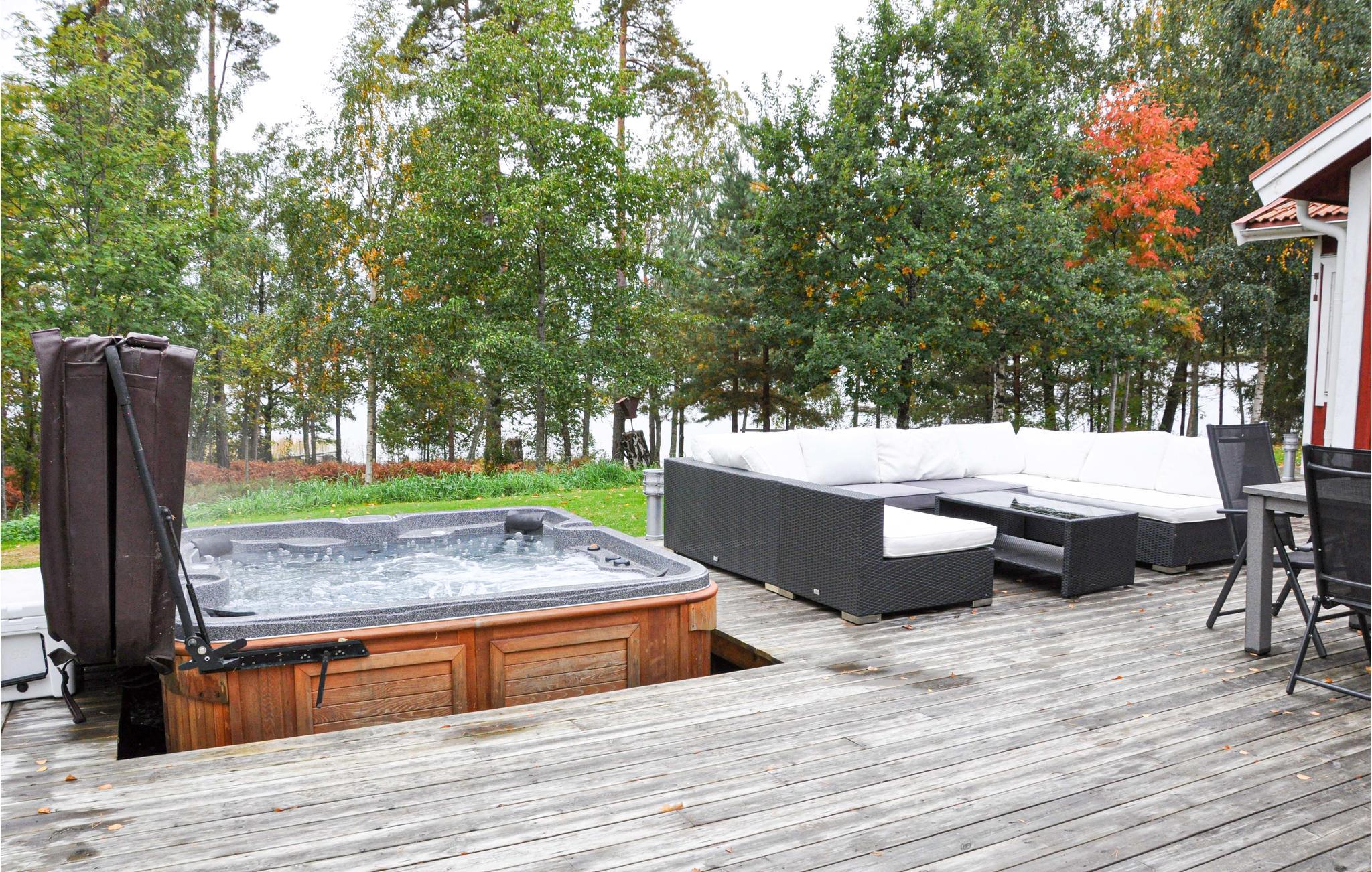 Husets absolutte højdepunkt er den private strand, som ligger omkring 40 meter fra huset. Her kan I hoppe i vandet og tage en frisk dukkert, når I føler for det. I finder også en brændefyret sauna på en badebro i vandet. I kan komme dertil med robåd, der er inkluderet i prisen. I kan også bruge båden til jeres fisketure på søen og tage friskfangede fisk med jer hjem.