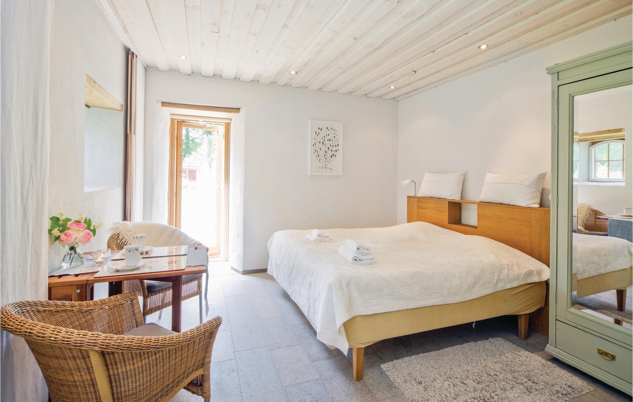 Skedmosse Gård ligger midt på Öland ikke langt fra kungliga Solliden, Borgholm med slot, golfbaner, natur- og kulturoplevelser står næsten i kø. På Skedemosse gård ligger denne eksklusive ferievilla med en wellnessafdeling med pool, whirlpool og sauna. Store vinduer i relaxafdelingen lukker masser af lys ind. I både soveværelser og køkken er der smukke gulve af ølandsk kalksten med gulvvarme. Køkkenet er fuldt udstyret og smagfuldt indrettet med masser af svensk træ. Villaen ligger ugenert og naturskøn og nær både hav og strand. De to udepladser med havemøbler indbyder til lange afslappede dage under åben himmel. Lav mad på grillen og spis den helt frisk fra gløderne. Drik øens egen øl til maden! På gården kan I gratis besøge Skedemosse museum med en historisk udstilling med vikinger og fund fra egnen. Skedemosse var en af Skandinaviens største offerpladser i fortiden, hvad der har efterladt mange spændende fund. Her er Sveriges største guldskat fra jernalderen bla. fundet. I kan også gå og cykle til Köpingsviks badstrand 6 km væk.
