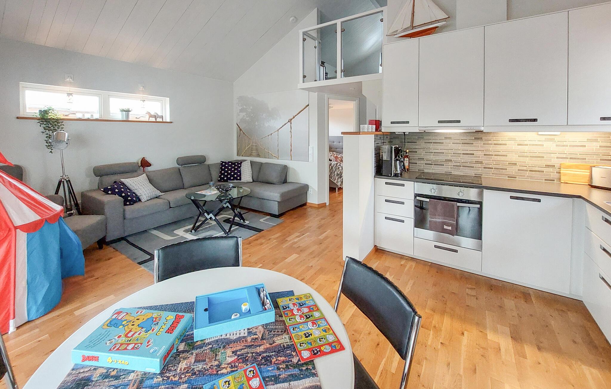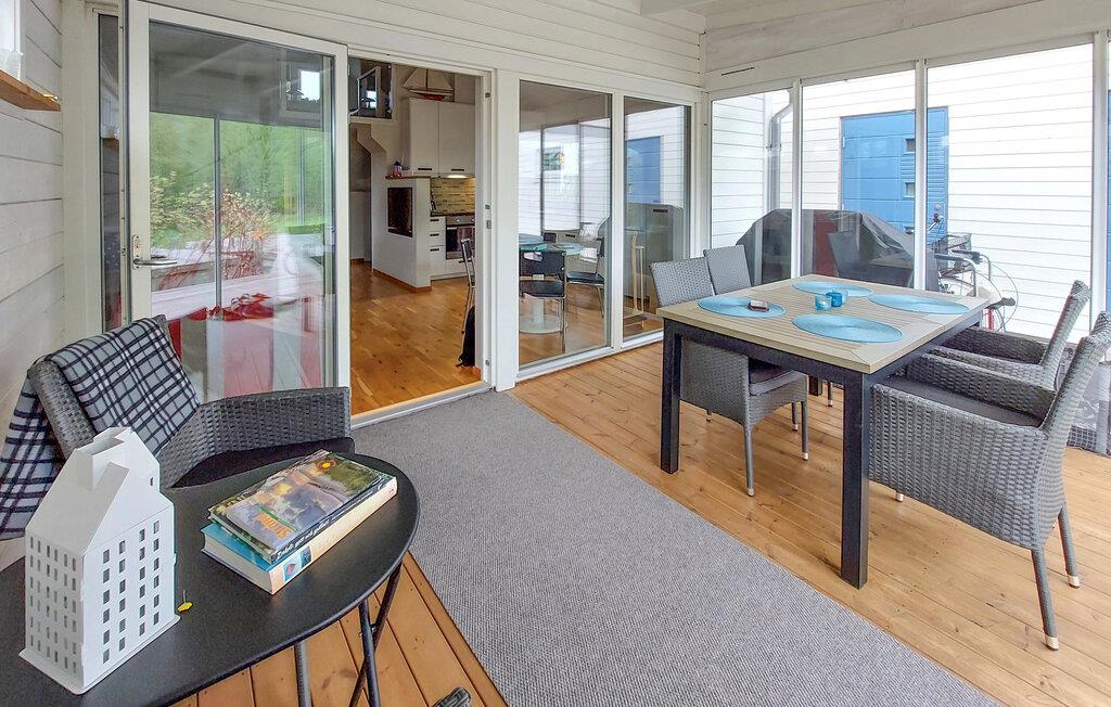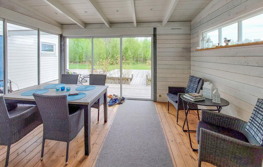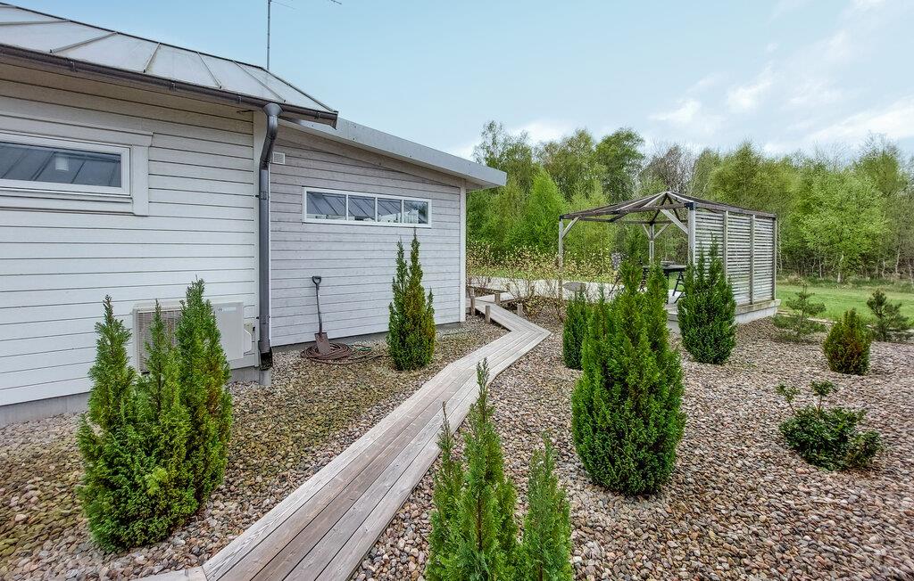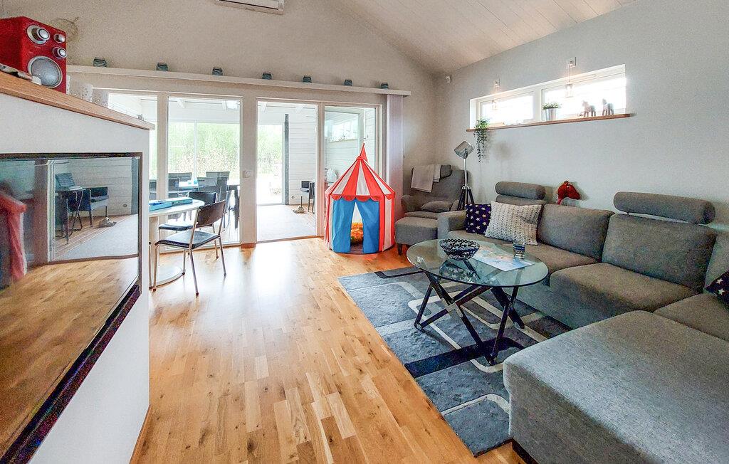 Dette lyse og hyggelige feriehus forkæler jer med rummelige og smagfulde værelser, som hele familien vil nyde. Fremstil lækre retter i det åbne køkken, spis i det glasindhegnede udendørsområde med udsigt over de grønne omgivelser, og glæd jer til hyggelige spilleaftener eller afslappende læsestunder på den rummelige sofagruppe.