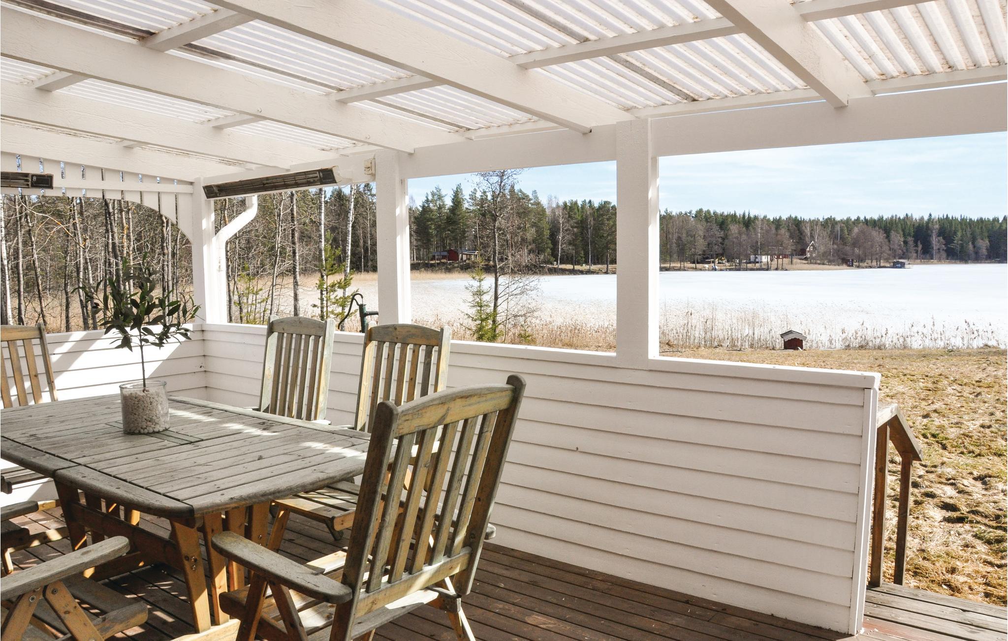 Bo med en smuk udsigt over på denne grund ned til søen, med husets egen bro og båd. Der er kun 40 m fra huset til søen Ullvättern med et stort søsystem hvor mange søer indgår. Ved siden af huset er et stort skovområde at gå ture i og lege i. Der er tre km til Storfors, med butikker og spisesteder. Der er et større udvalg i Kristinehamn, 24 km væk. I området er der mange seværdigheder, fx byen Grythyttan som har en lang historie bag sig. Bådmotor kan lejes af ejer på stedet, mod depositum. I huset er der to soveværelser, køkken og et stort alrum med store vinduer mod søen. I alrummet er der også en sovesofa til to. Brusebad i separat bygning i gården og desuden et kemisk wc i huset.