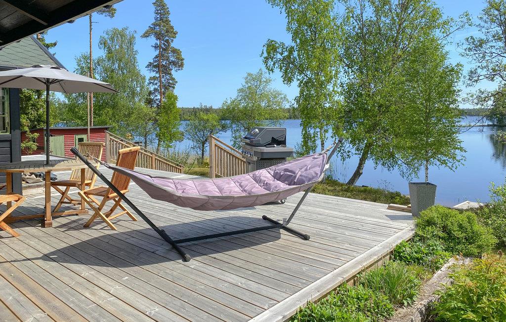 Dette træhus lige ved Fängen-søen indbyder til aktive dage. Hytten er det perfekte valg for alle naturmennesker, især lystfiskere. Brug denne bolig som et ideelt udgangspunkt for smukke fisketure og vandreture. Inde i det lyse hus skaber de hyggelige møbler og de flotte farvedetaljer en hyggelig atmosfære. Ved spisebordet kan I planlægge jeres ture og holde spilleaftener med friske dukkerter og snacks. Slap af efter fisketuren i det smukke vand eller nyd friske blåbær på terrassen ved søen. Den store have lader intet tilbage at ønske. Lad jer blidt vugget i hængekøjen på den åbne terrasse, nyd de grønne trætoppe og drivende lunte skyer og mærk ferielykken strømme gennem jer.