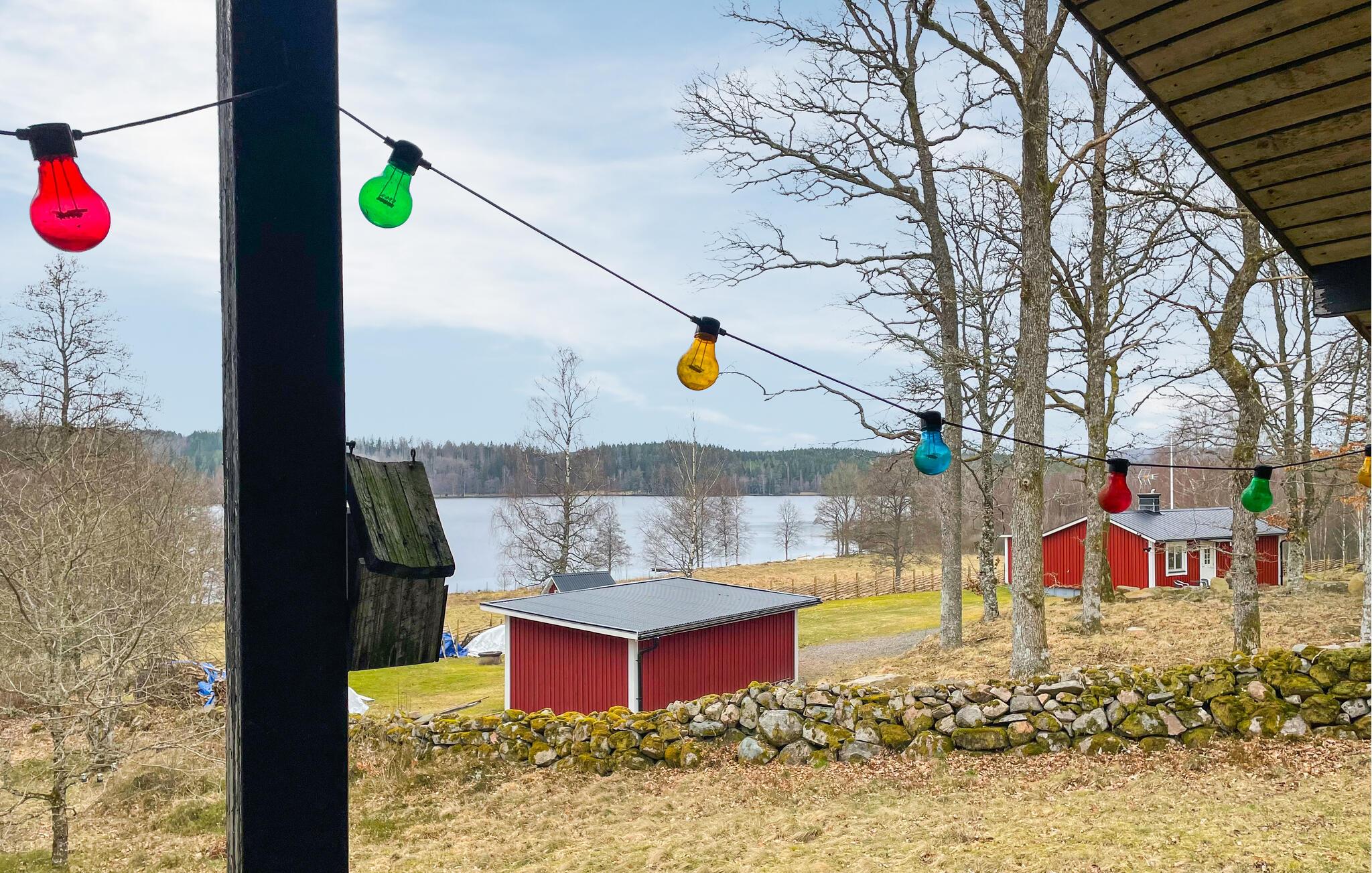 I bor kun få minutters gang fra søen, hvor I kan hoppe i vandet fra badebroen og prøve lykken med fiskestangen. I bor i et område med mange fine udflugtsmål. Blandt andet kan I opleve det vilde vesten i forlystelsesparken High Chaparral eller vandre i Store Mosse Nationalpark.