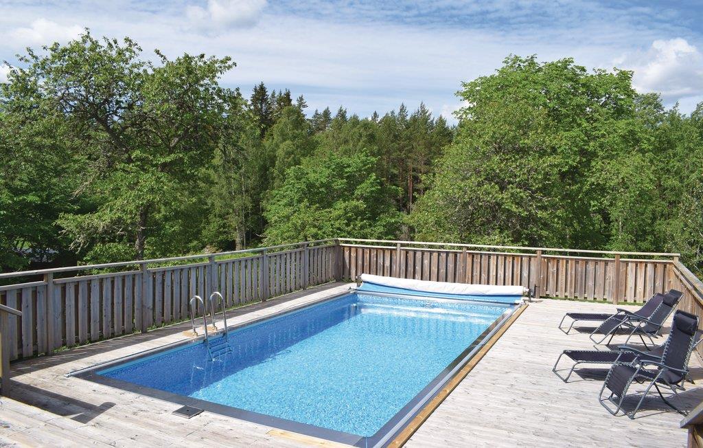 På bagsiden af huset findes en stor terrasse med en dejlig swimmingpool, hvor I kan tage forfriskende svømmeture på varme sommerdage. I spaafdelingen findes både spabad for to og sauna. Dette er et feriehus udover det sædvanlige med store værelser og pejs i entreen.