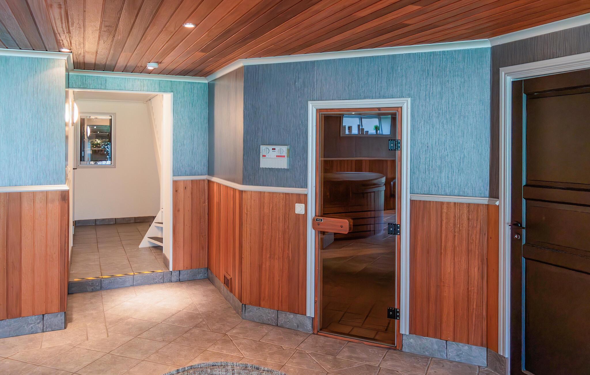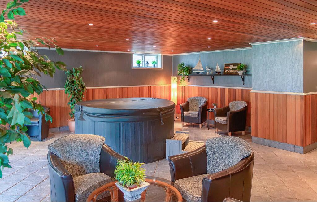 Velkommen til dette charmerende hus, hvor hele familien kan slappe af og nyde kvalitetstid sammen. Efter et fælles måltid kan I finde jer til rette i de store sofaer i stuen, lytte til de knitrende flammer i brændeovnen og streame jeres yndlingsfilm. Det rummelige wellness-område med spabad, sauna og komfortable loungemøbler giver den perfekte mulighed for at slappe af. Herfra kan I gå direkte ud i haven.