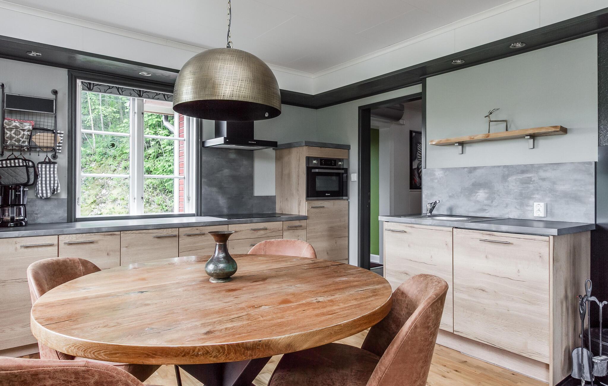 Omgivet af duftende skove og grønne enge byder dette smagfulde feriehus jer velkommen. Varm jer efter en dag udendørs ved den knitrende pejs, tilbered et lækkert måltid i det rummelige køkken eller se stjernehimlen fra en af ??de to terrasser, begge med en fantastisk udsigt over Klarälven og det omkringliggende landskab.