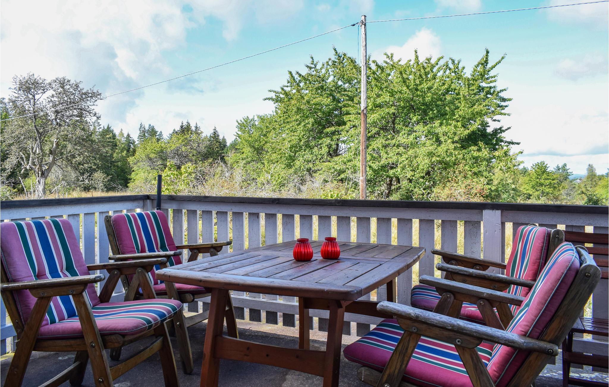 Her bor du i stueetagen i et hus, hvor der også er en lejlighed til leje. I enden af huset finder du en stor og dejlig overdækket veranda. I huset finder du to soveværelser med dobbeltsenge, hvor du i det ene soveværelse kan opdele sengene. Et stort køkken og stue i åben plan. Toilet og bruser er adskilt i to værelser. Her bor du kun 400 m fra søen, hvor du finder en brændeovns-sauna lige ved strandkanten. Her findes også båden, der er inkluderet i lejen. Hvis du vil have en motor, kan du leje den hos husejeren.