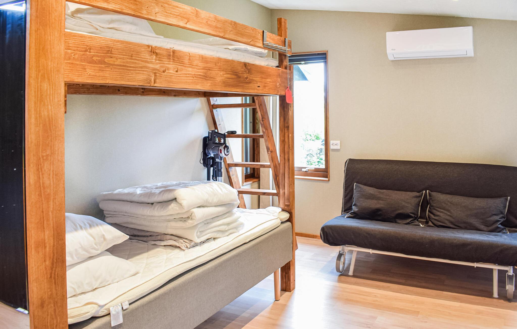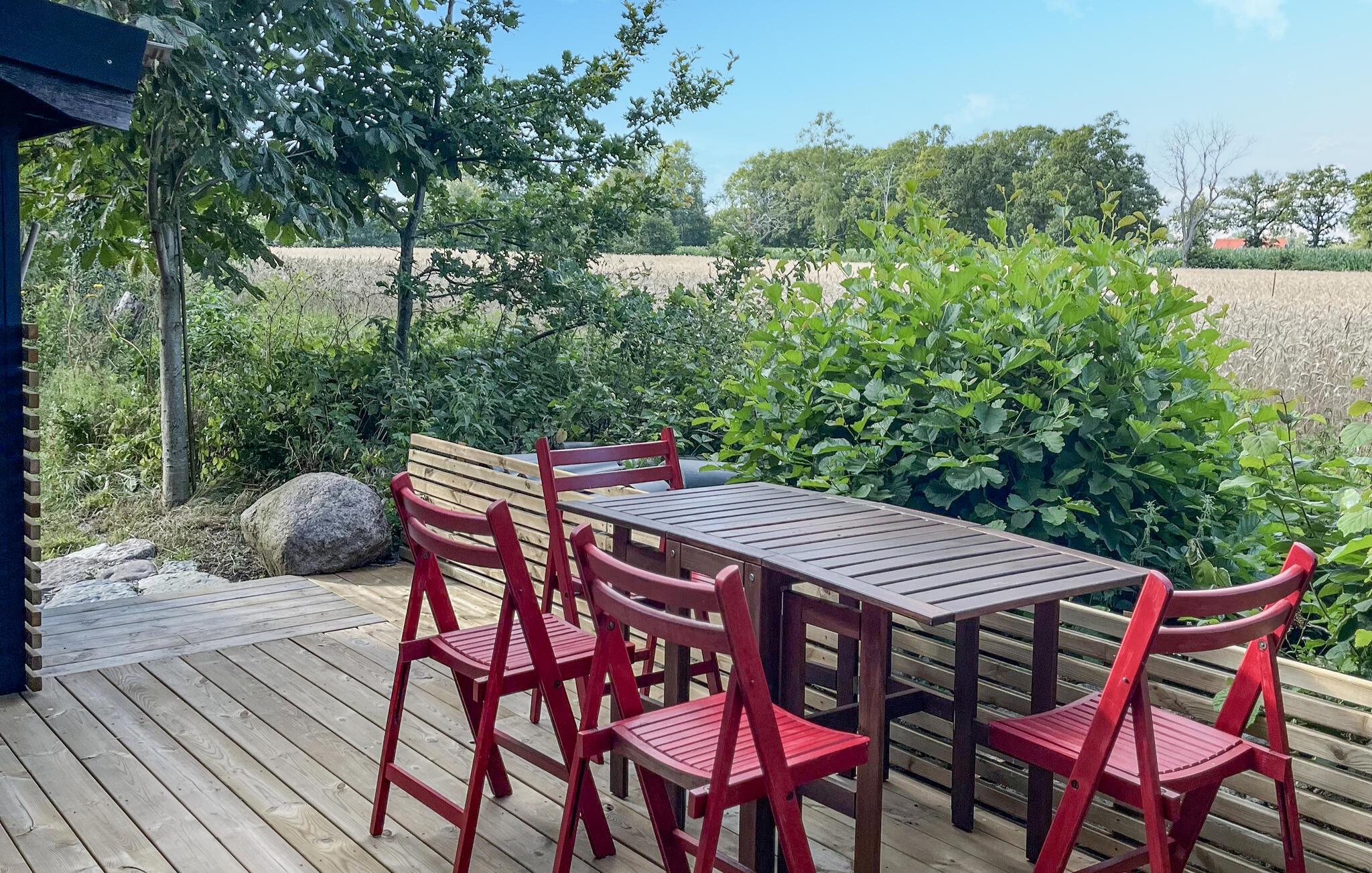 I jeres kompakte feriehus i Stenninge på den idylliske ø Öland venter der jer en hyggelig indretning med en lys stue, hvor store vinduer giver udsigt til det grønne udenfor. Læn jer tilbage på sofaen, slap af med en bog, eller lad aftenens oplevelser passere revy.