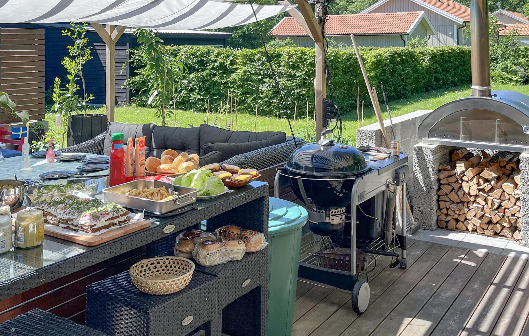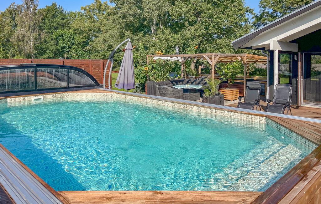 Et højdepunkt udenfor er den store terrasse med et spisebord, hvor I kan nyde måltider sammen under åben himmel. Start morgenen med en kop kaffe i det fri og lad jer fortrylle af den fredelige atmosfære. På varme dage tilbyder poolen en forfriskende dukkert, mens liggestolene inviterer til afslapning. Den store have er perfekt til familier med børn. Her finder I en gynge og en sandkasse, hvor de små kan lege, mens I nyder den svenske ro.