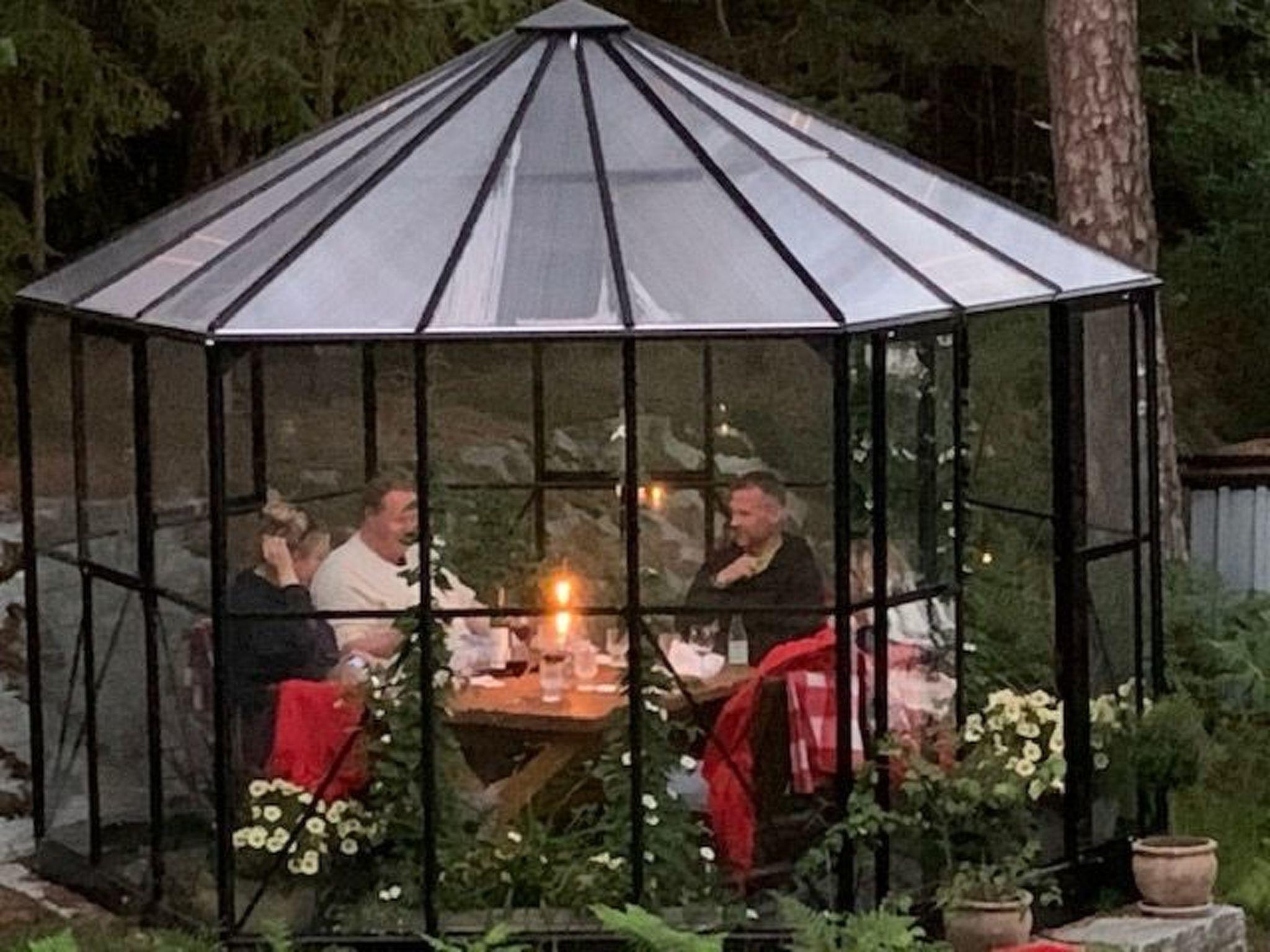 There is one terrace just outside the kitchen with a garden table and chairs and a Glass Pavilion with table and chairs, about 10 meters from the house, towards the jetty. In just a few further steps there is the cliff with sunchairs, where you sit just above the water with an outstanding view over the sea. The Barbeque grill can be rolled to where you want it.