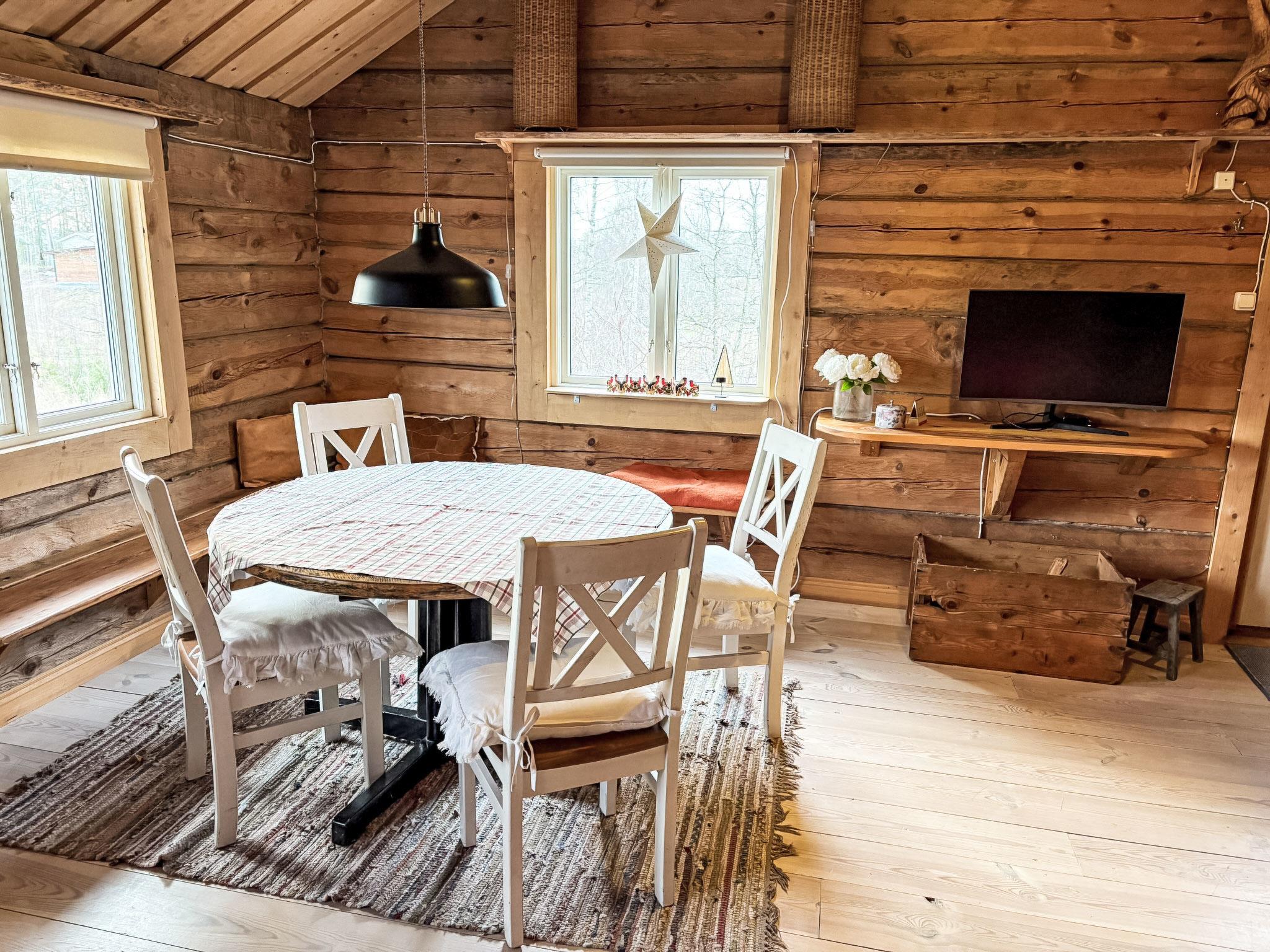 "Ekbacken", 2-room house 66 m2. Object suitable for 3 adults + 2 children. Spacious, with sloping ceilings, tasteful and cosy furnishings: open living/sleeping room with 1 double bed (180 cm, length 200 cm), TV. Sleeping alcove with 1 bed (80 cm, length 200 cm). Large, open kitchen (4 hot plates, oven, microwave, freezer, electric coffee machine) with dining table. Exit to the garden. Shower/WC. Heating, electric heating, boiler (70 litres). Upper floor: (ladder) small sleeping alcove 12 m2 with 2 beds. Wooden floors. Comfortable furnishings in the country house style. Large terrace 24 m2. Terrace furniture, barbecue (portable). Beautiful view of the lake, the countryside and the forest. Facilities: washing machine, iron, logs (extra). Internet (WiFi, free). Please note: non-smoking house. Maximum 1 pet/ dog allowed. Smoke alarm, fire extinguisher. TV via casting. Instead of an enclosed bedroom, some sleeping areas are located in an open-plan area (gallery, alcove, etc.).