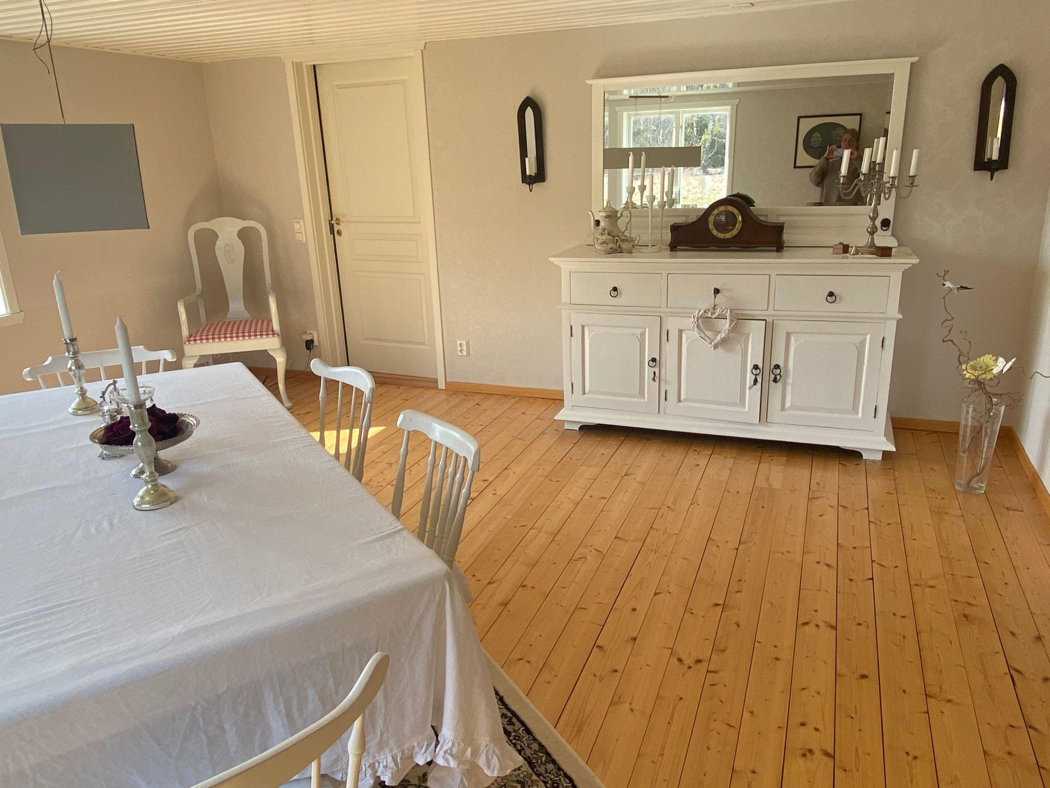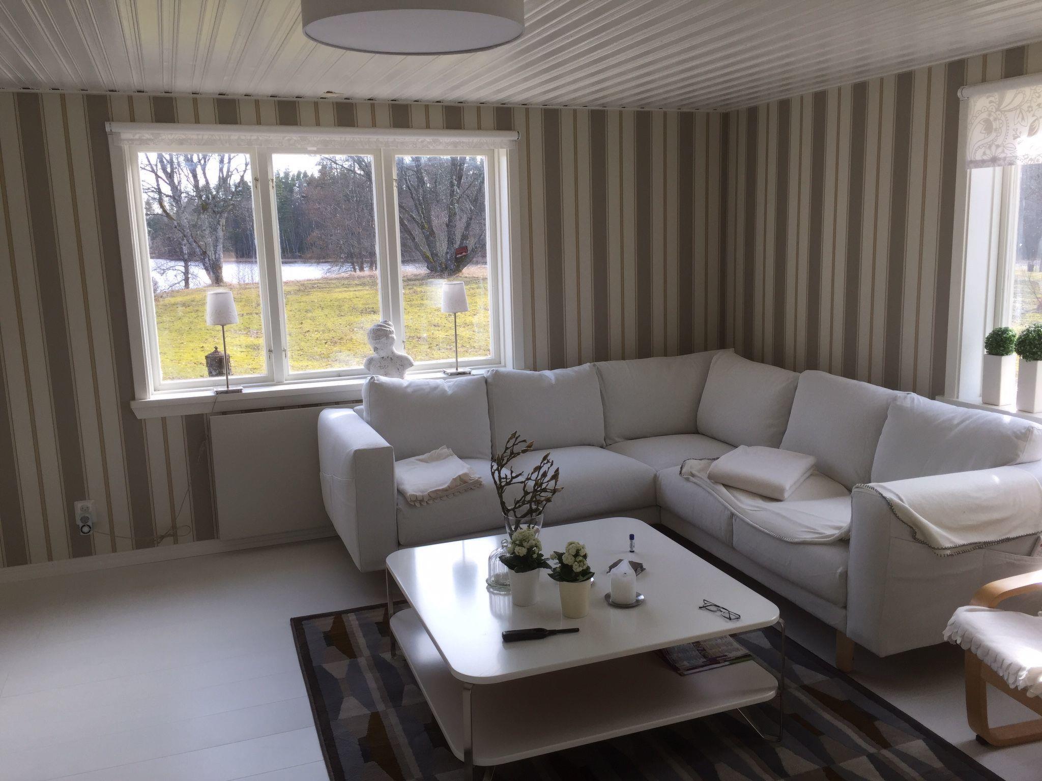 "Skuggebo Gårdsjön" - the name says it all, it's a house right on the water, a Småland holiday idyll for families and anglers with really top facilities. The Gårdsjön with our jetty is about 25 metres directly in front of you, the small fish-rich Gölen is about 150 metres behind the house in a valley and the large Ruskensee, known beyond the borders of southern Sweden as one of the best zander waters, is only about 700 metres away on foot.If you are looking for peace, nature and relaxation and still expect an acceptable connection to the infrastructure of daily life, Skuggebo is the right place for you: The main house, our sauna house and the original Lappish barbecue hut (both can be rented for an extra charge) are situated on an absolutely sunny plot of approx. 3,500 metres. Only the small and quiet road to Sandvik runs between the house and the lake, and we have completely renovated and refurnished this idyllic property from the ground up. A new bathroom, a new functional, light-coloured fitted kitchen, new flooring, electricity and a large terrace with a view of the lake meet our high standards for a guest residence. All rooms are bright and furnished in typical Scandinavian style. You will want for nothing here. We have also written the whole story about the house on our own website. With its three bedrooms with double beds and two additional sofa beds, the house can accommodate up to 8 people. The most favourable occupancy is 6 people in the three bedrooms. The final cleaning fee increases slightly for occupancy by more than 6 people. Please contact us in advance if you are travelling with more than 6 people. Take a virtual tour of our house "Skuggebo Gårdsjön": You enter the house either from the back through the typical Swedish rear entrance or directly from the front through the conservatory. We usually start here from the back, as this is also where you park your car. First you enter the anteroom, which is used as a pantry and cloakroom. Then you enter the large eat-in kitchen with dining table and chairs for 6 people as well as the fully equipped white country kitchen with induction hob, extractor bonnet, dishwasher, fridge and plenty of worktop space. The design of the walls corresponds to the typical Swedish interior and therefore fits in beautifully with the holiday home. The kitchen is equipped with all utensils and furnishings (e.g. toaster, microwave, coffee machine etc.) From the kitchen, a staircase leads to the upper floor. Here you will find two of the three bedrooms, one on the right and one on the left, as well as a larger lounge in the centre. Back downstairs, you enter the hallway through the kitchen, which leads to the very large and bright living room on one side and the lounge and dining area with seating for up to 8 people on the other. Both rooms have a view of the lake. The hallway also leads to the bathroom with walk-in shower, washing machine and toilet. The third and actually the master bedroom can be reached through the living room, which is typical for the country and age. Brightly furnished with a double bed, wardrobe and chest of drawers. All bedrooms can be darkened and the approx. 22 square metre living room is furnished with sofas, coffee table and flat-screen TV plus WLAN. The two large windows let in the sun all day long and all rooms can be heated with electric elements and a modern heat pump in the hallway. The heat pump also serves as air conditioning if required. All furniture and furnishings have been newly purchased.outdoor area:There is plenty of patio and garden furniture for you to relax on the very spacious terrace. Large table, parasol and loungers, barbecue fireplace and rotary clothes dryer. Depending on delivery times, the original Lappish barbecue hut can be rented for really rustic and adventurous barbecue fun. There is also a small 3.90 metre rowing boat down by the lake for fishing and exploring the lake. On request and depending on availability, up to 5 larger aluminium fishing boats "Type Linder Fishing 440" with 5 and 6 HP four-stroke engines and corresponding equipment can also be rented for use on the Ruskensee. A deposit is charged for the hire. The boats are primarily useful for our fishing guests and are located approx. 2 km north up the small road in Sandvik in the boat harbour. At the sauna house there is an outdoor area with water and a stainless steel filleting table for gutting your catch. In addition to the refrigerators in the house, we have two large freezers in the outhouse, which are particularly suitable for storing fish. See details and by arrangement. Our "fleet" is located in Sandvik in a small boat harbour. Sandvik is approx. 2 km along the road. There are plenty of parking spaces available. In Sandvik there is also a small sandy beach with a sunbathing lawn with barbecue area.Entertainment:TV (flat screen TV), satellite system with German programmes, radio/CD player, many children's and board games, books, thrillers and magazines, DVD player, Internet connection with WLAN.Miscellaneous:Pets are unfortunately not allowed, non-smoking house, additional costs to be settled on site payable on acceptance. The obligatory final cleaning is carried out by us and is subject to a charge. We also guarantee the high standard of hygiene in the holiday home. Services and information: The handover and acceptance of the house will be carried out by us personally. Deposits are required for the house and motorboats. If required, we are also personally available on site to answer questions and solve problems during your stay. You can also hire bed linen or towels for a small fee if required, and payment for additional services and incidental costs can be made cashless on site. Travelling with your own boat is only possible on request. Please clarify this with the landlord before booking. The stated maximum occupancy of up to 8 persons is only possible for groups of anglers. In this case, staggered over-occupancy su