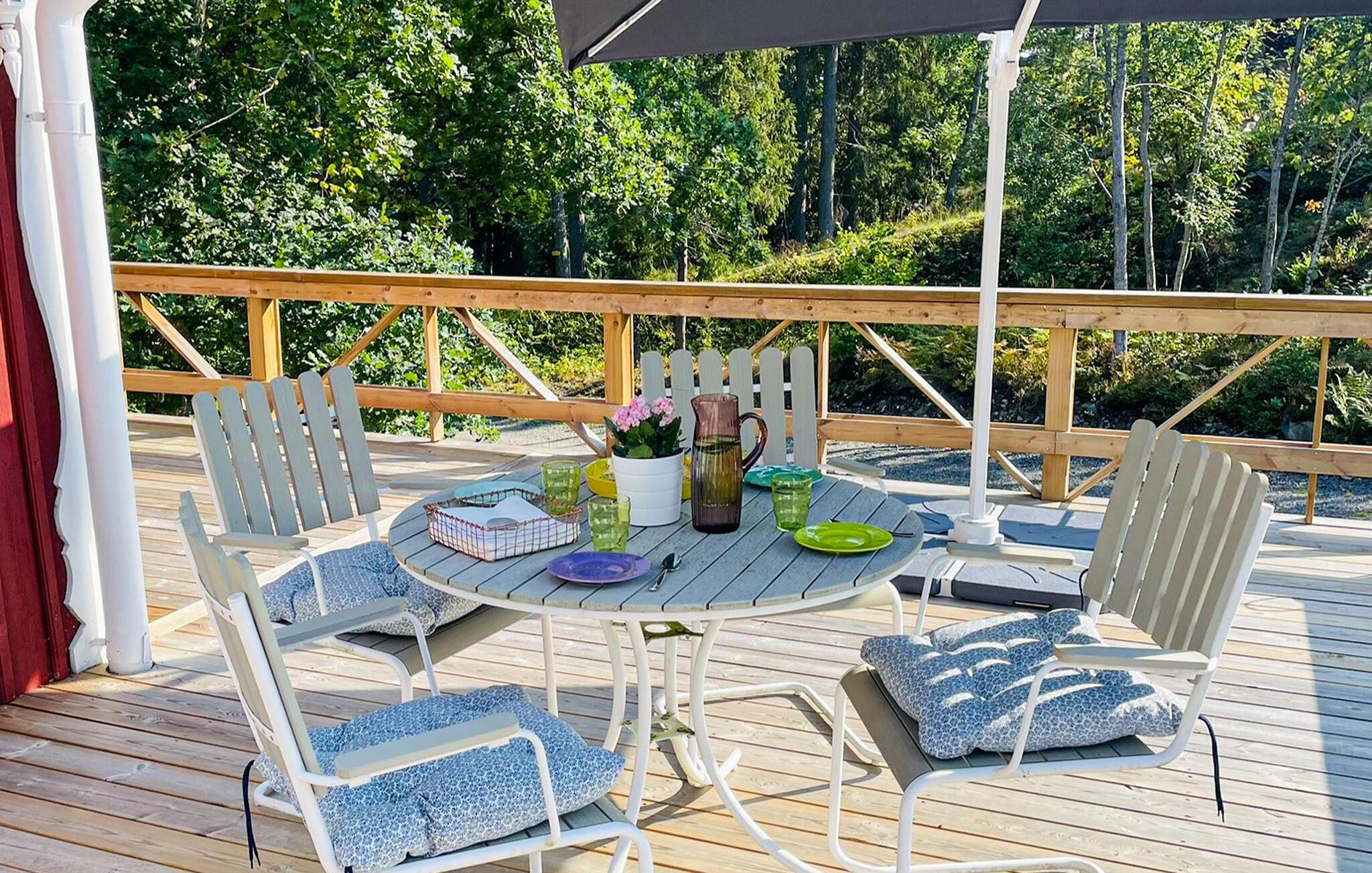 Beliggende på en smuk naturgrund og kun få skridt fra stranden byder dette komfortable og smukt møblerede feriehus jer velkommen. Nyd harmoniske måltider og sjove spilleaftener ved det indbydende spisebord, nyd den hyggelige atmosfære i den komfortable stue, og lyt til den blide knitren fra den norske pejs på kølige dage.