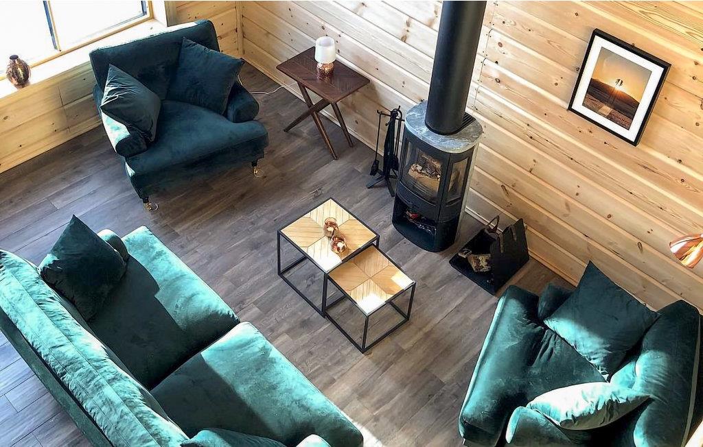 Det giver to boliger med plads til i alt 24 personer. Miljøet her giver en ægte bjergfølelse, og udsigten over bjerget er forrygende. Det ligger tæt på bjerget, hvor du kan vandre, cykle, fiske, plukke svampe og bær samt tilberede god mad. 4 soveværelser, hvoraf det ene har en dobbeltseng, det ene har en dobbeltseng og en sovesofa til to, det ene har 2 køjesenge, og det ene har en køjeseng. Køkkenet og stuen har en åben grundplan med ca. 5 meter loftshøjde. Her kan være et langbord. De to badeværelser har bruser og toilet. Sauna og brændeovn.
