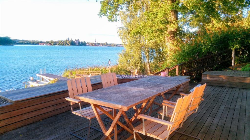 Feriehuset Lotorp, en villa i svensk stil med en vidunderlig vinterhave, ligger på en ca. 2.400 m² stor søgrund direkte ved søen Mälaren med udsigt til Gripsholm Slot. Nabohuset ligger ca. 50 meter væk. Fra badebroen kan du springe direkte i Mälaren eller tage ud på søen i husets robåd eller kano. Den charmerende by Mariefred ligger ca. 8 km derfra. Et skib sejler regelmæssigt gennem det smukke skærgårdslandskab mellem Mariefred og Stockholm, og i bil er der ca. 70 km til Stockholm.