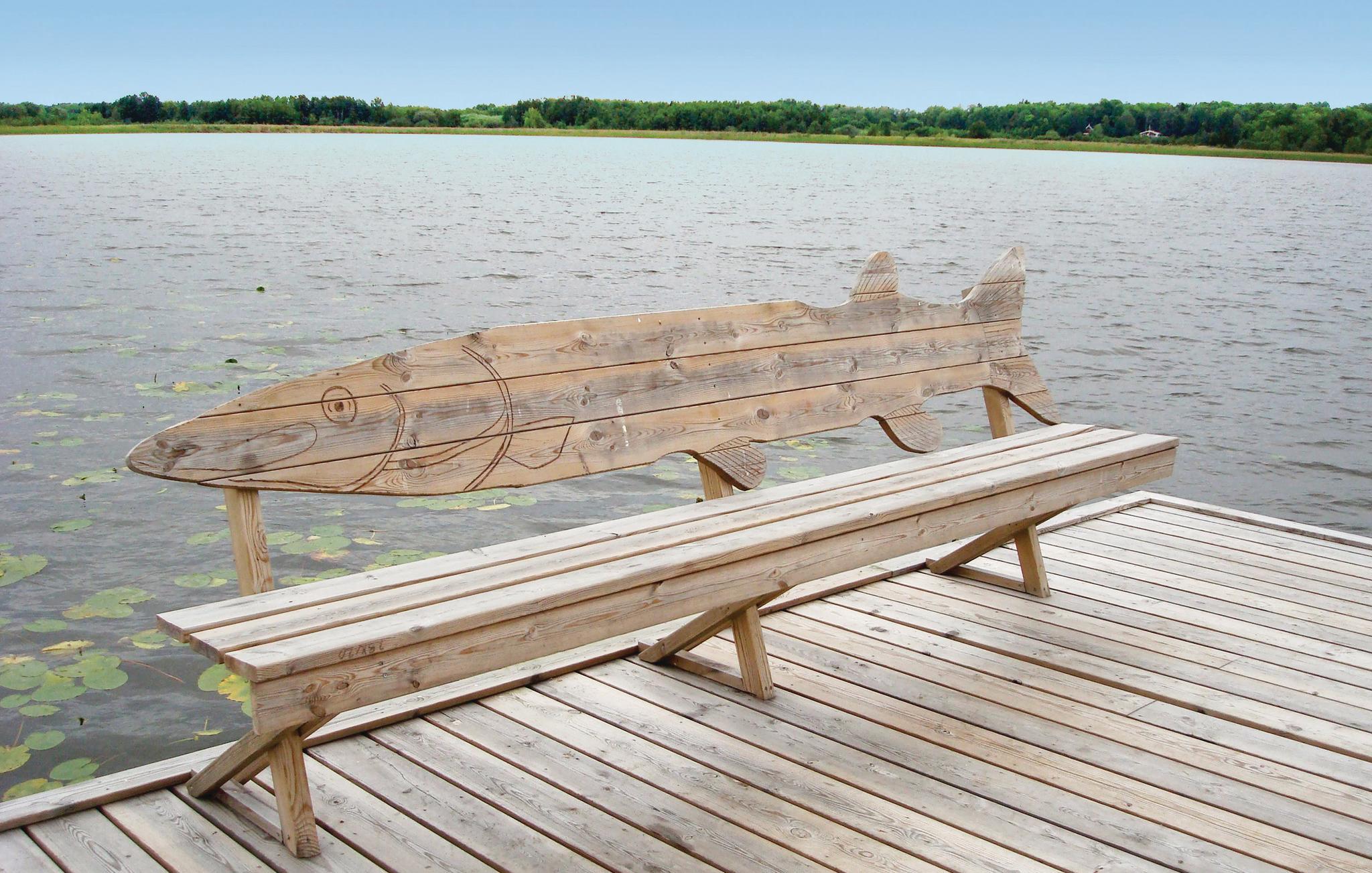 Her er egen badebro, og det er gratis at fiske.