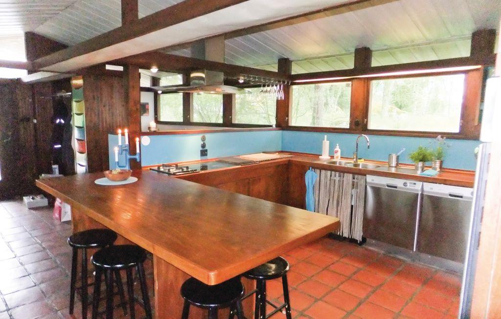 Dit attraktive hus er tegnet af den berømte danske arkitekt Ole Helweg. Træd ind i de rummelige opholdsrum, hvor den knitrende pejs skaber en varm atmosfære på køligere dage. Det veludstyrede køkken med store arbejdsflader og indbydende bar med stole er perfekt til hyggelige sammenkomster – alt imens I nyder udsigten over den glitrende Mälaren.