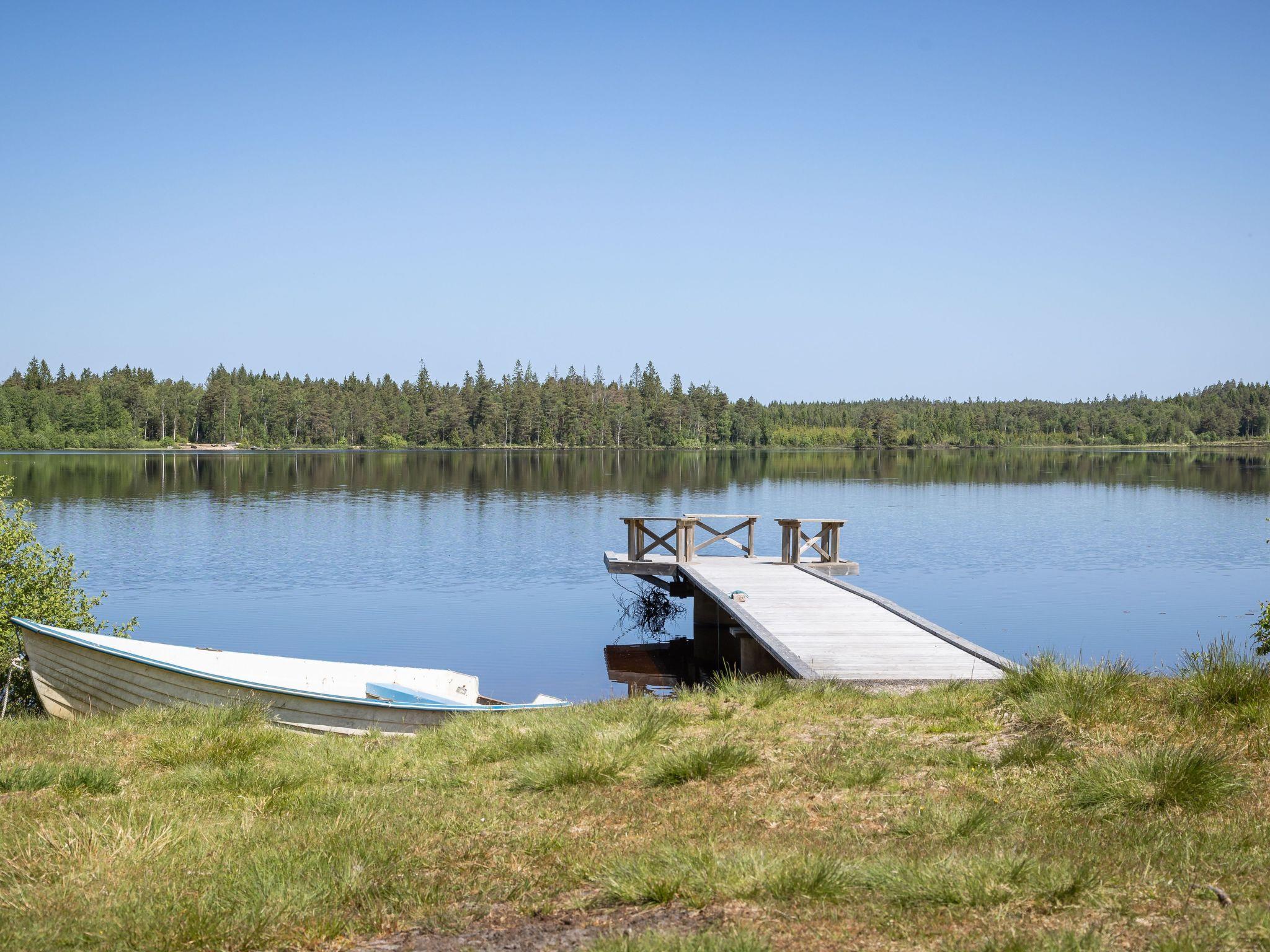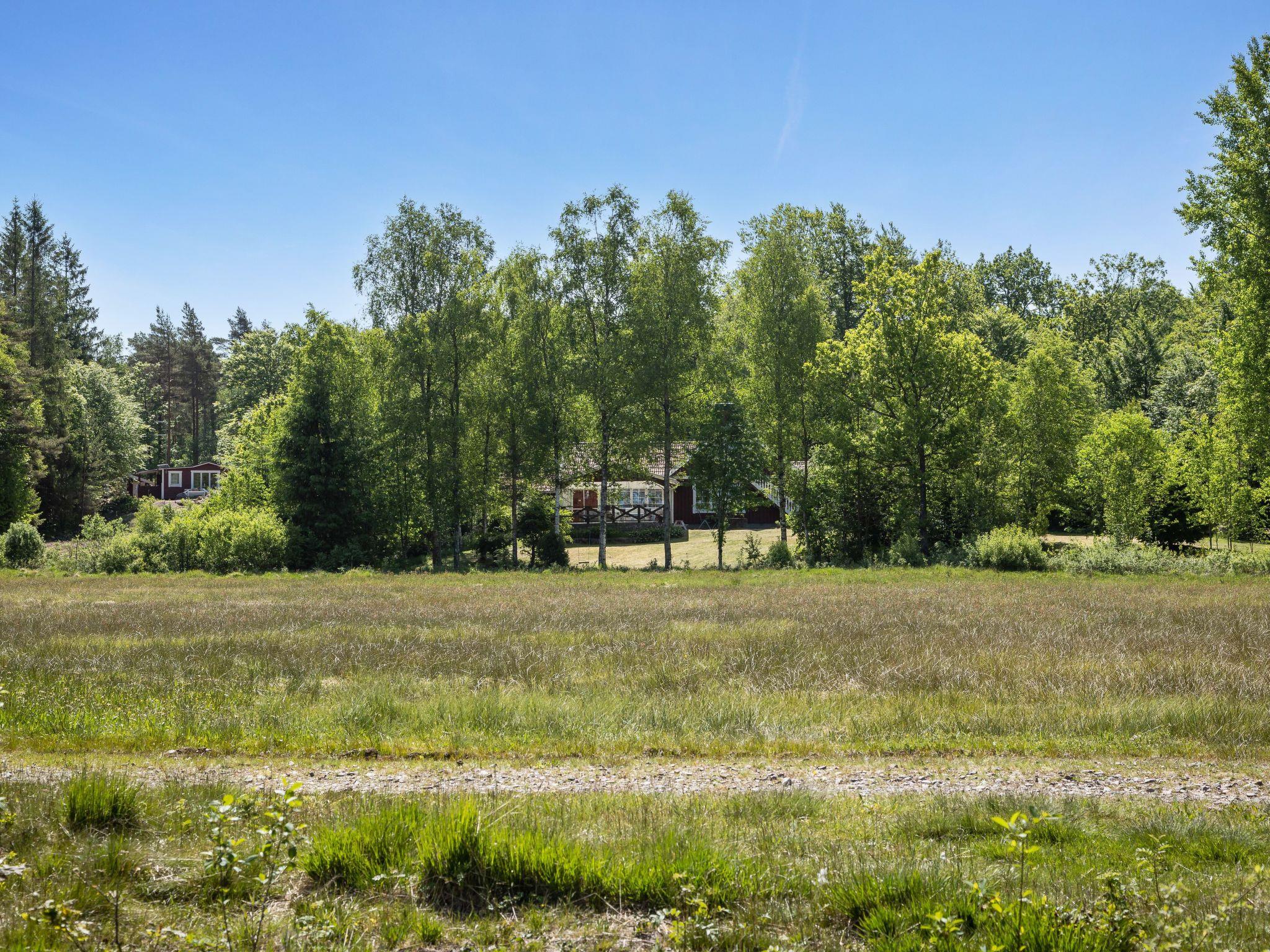 Beautiful single-family house "Vänneböke", 2 storeys, terraced. 20 km from the centre of Traryd, 20 km from the centre of Markaryd, 50 km from the centre of Ljungby, in a secluded, quiet position, 100 m from the lake, in the countryside, in the woods. For shared use: barbecue house, bathing jetty. Private: natural state property 3'000 m2 with trees, meadow. Rowing boat. Shop 20 km, supermarket 23 km, bus stop 13 km, railway station "Hässleholm" 60 km, ferry "Helsingborg" 115 km, pebble beach 100 m, indoor swimming pool 23 km. Fishing possibilities 100 m. Nearby attractions: Smålandets Älgsafari/Moose safari. Please note: fishing [permit required]. Animals in the neighbourhood.