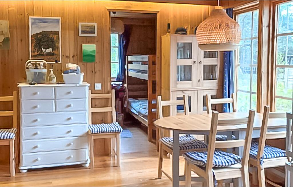 Glæd jer til dette rustikke feriehus, som har to soveværelser og kan rumme op til sek personer. Både ude og inde er huset i autentisk svensk stil, hvilket bidrager til en hyggelig atmosfære. Stuen og køkkenet er i åben forbindelse, så I får et skønt rum til madlavning, lækre middage og afslapning.