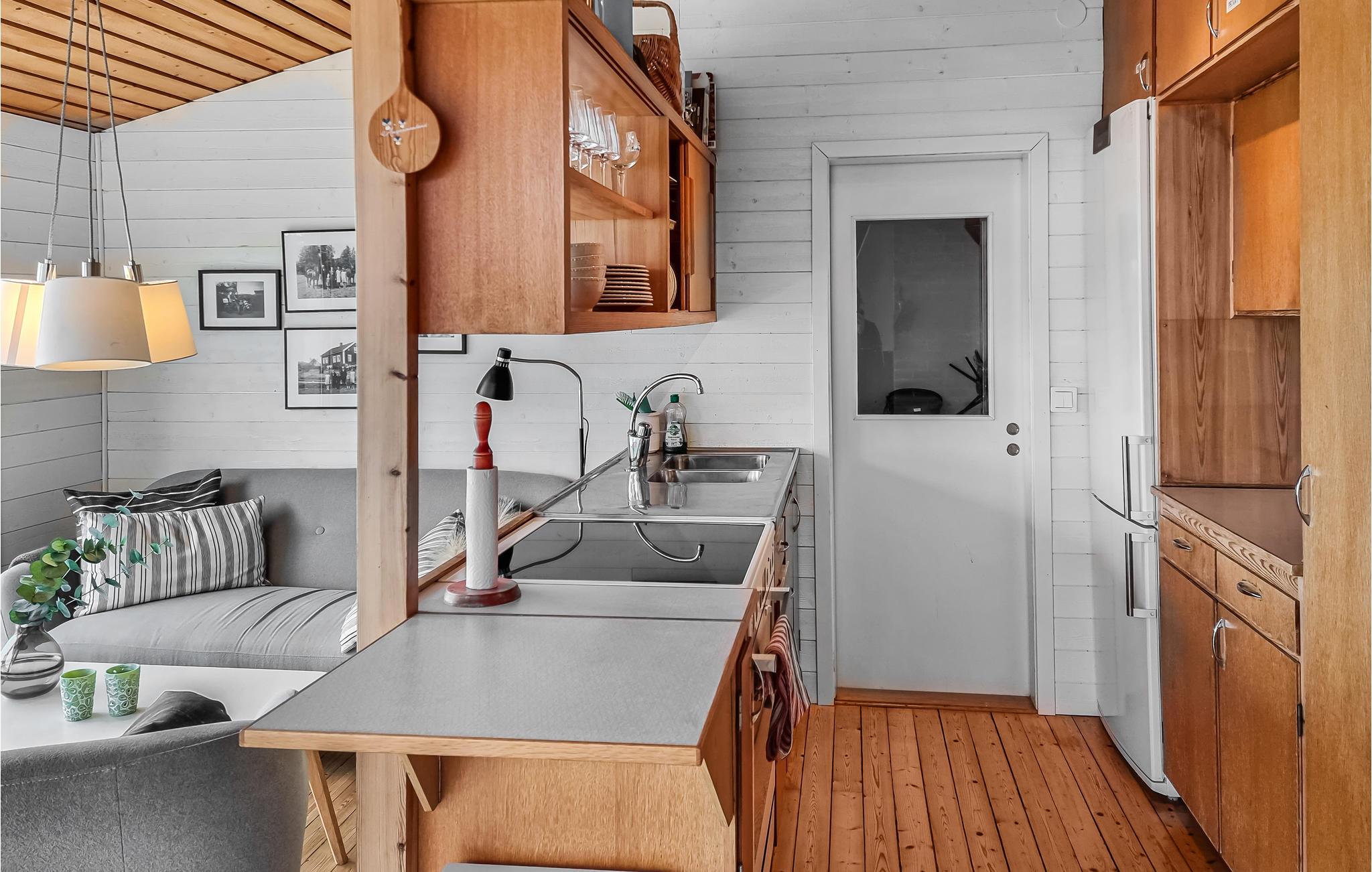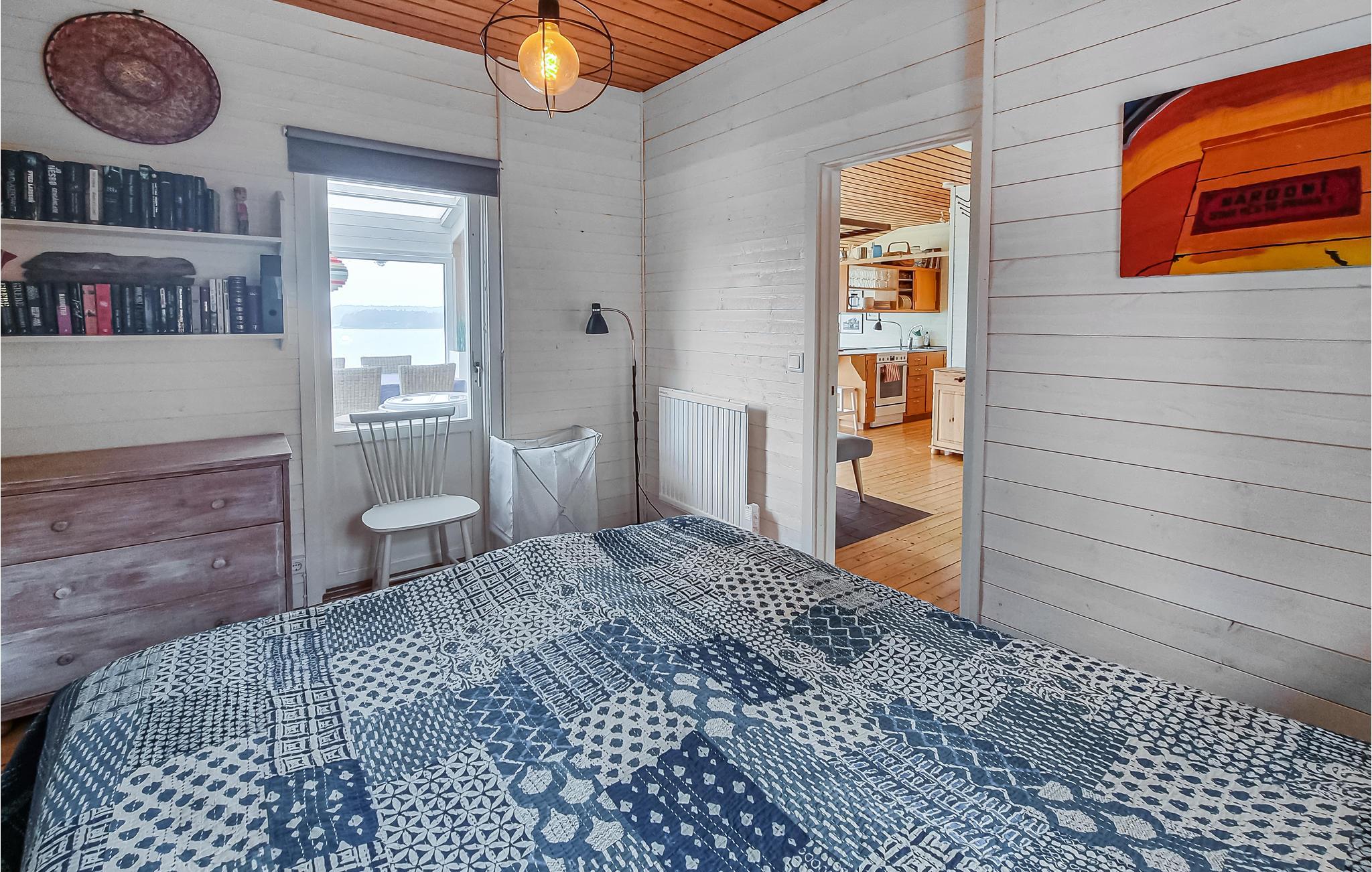 Tilbring en uforglemmelig tid i dette komfortable hus, som byder jer velkommen med en malerisk beliggenhed ved havet. Et stort lyst opholdsrum med hyggelig indretning, markante trælofter, loftsvinduer og hele vægge med panoramavinduer fra gulv til loft danner en usædvanlig ramme om jeres ophold. De meget store vinduer giver jer en sjælden udsigt, og uanset hvad I foretager jer i køkken-alrummet, kan I altid se havet. Lad blikket vandre over vandet, mens I spiser eller laver mad, og skab en særlig hyggelig stemning om aftenen ved at tænde op i brændeovnen. Den store naturgrund byder på masser af plads til at lege og slappe af. Se jeres børn rende rundt på græsplænen, mens I gør alt klar til en dejlig grillaften. Gå ned ad trappen og spring i vandet.