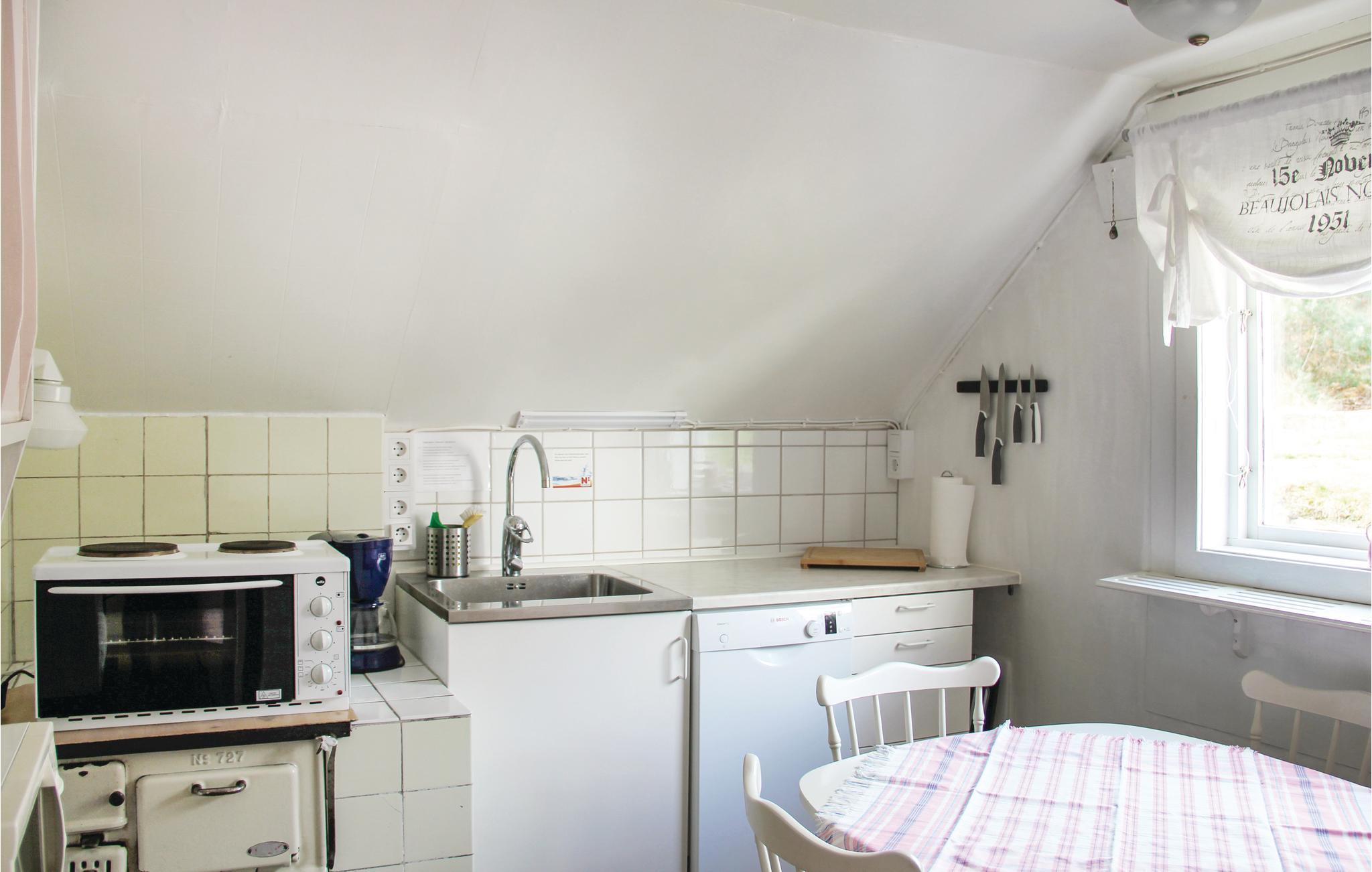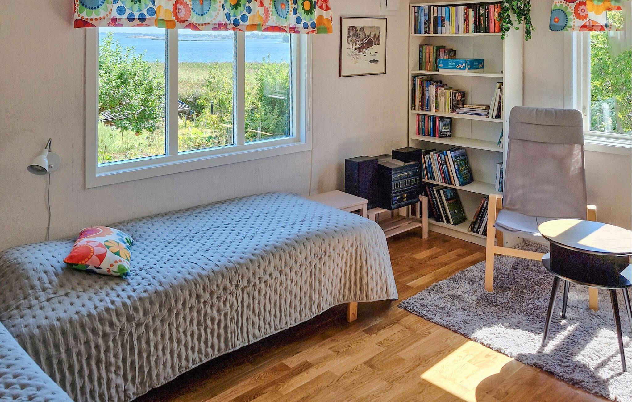 Hyggeligt hus, der ligger højt, med en fantastisk havudsigt. Plæner foran huset og kuperet naturgrund med bjerg på husets bagside. Havemøbler og grill i haven. I kan fiske og bade i havet, kun en vej adskiller jer fra stranden. Det er dog bedst at bade fra en strand ca. 2 km mod øst, eller på øens sydlige del. Til butik, cafe og kiosk er der to km. Gangafstand til bageri og røgeri med fisk. Øvrige butikker mv. i Karskrona. Den gode Trummenäs golfbane ligger lige nord for øen. Skærgårdsbåden Wittus forbinder Sturkö/Östra Skärgården-Karlskona og har anlægsplads på den nordvestlige del af øen (3 km) og Senoren (5 km). Her kan I bo ganske nær på havet.