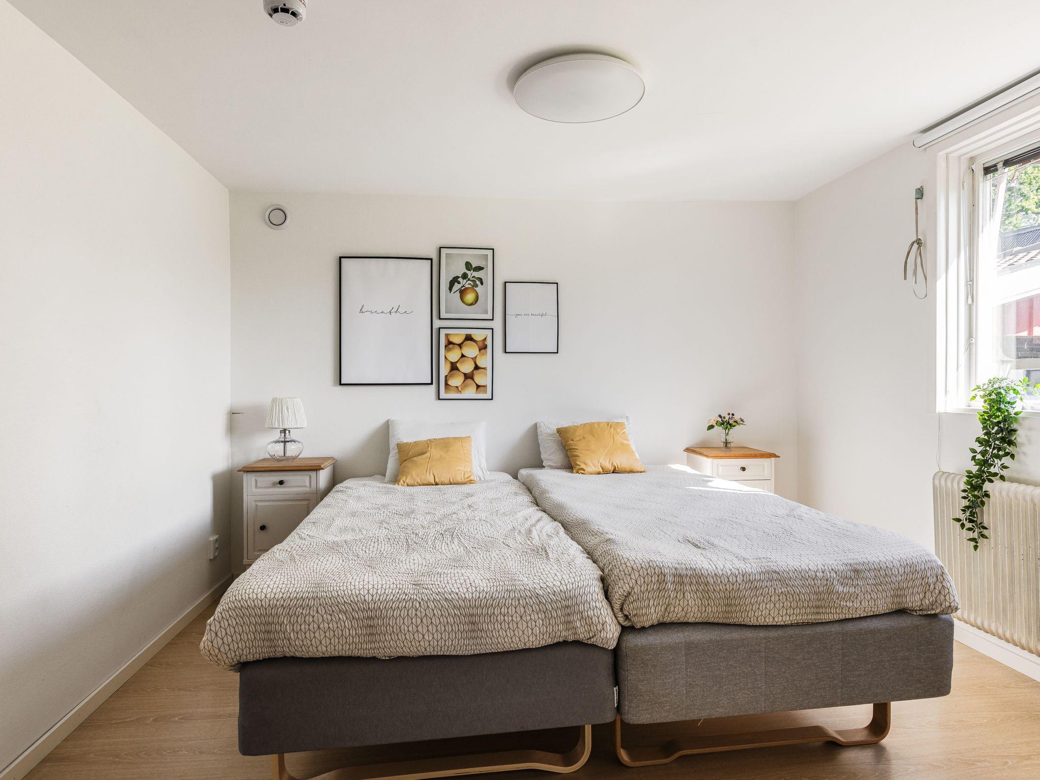 "Ryedal", 6-room house 180 m2. Bright, beautiful furnishings: living/sleeping room with 1 double sofabed and TV. Exit to the veranda. 1 double bedroom with 1 double bed. 1 double bedroom with 2 beds. Kitchen (oven, dishwasher, 4 ceramic glass hob hotplates, toaster, kettle, microwave, freezer, electric coffee machine) with dining table. Shower/WC, sep. WC. Heating. On the lower ground floor: living room with TV. 1 double bedroom with 2 beds. 1 double bedroom with 1 bed and 1 x 2 bunk beds. Shower/WC. Heating. Wooden floors. Terrace furniture, barbecue (portable). Facilities: washing machine, iron, children's high chair, baby cot. Please note: non-smoking house. Maximum 1 pet/ dog allowed.