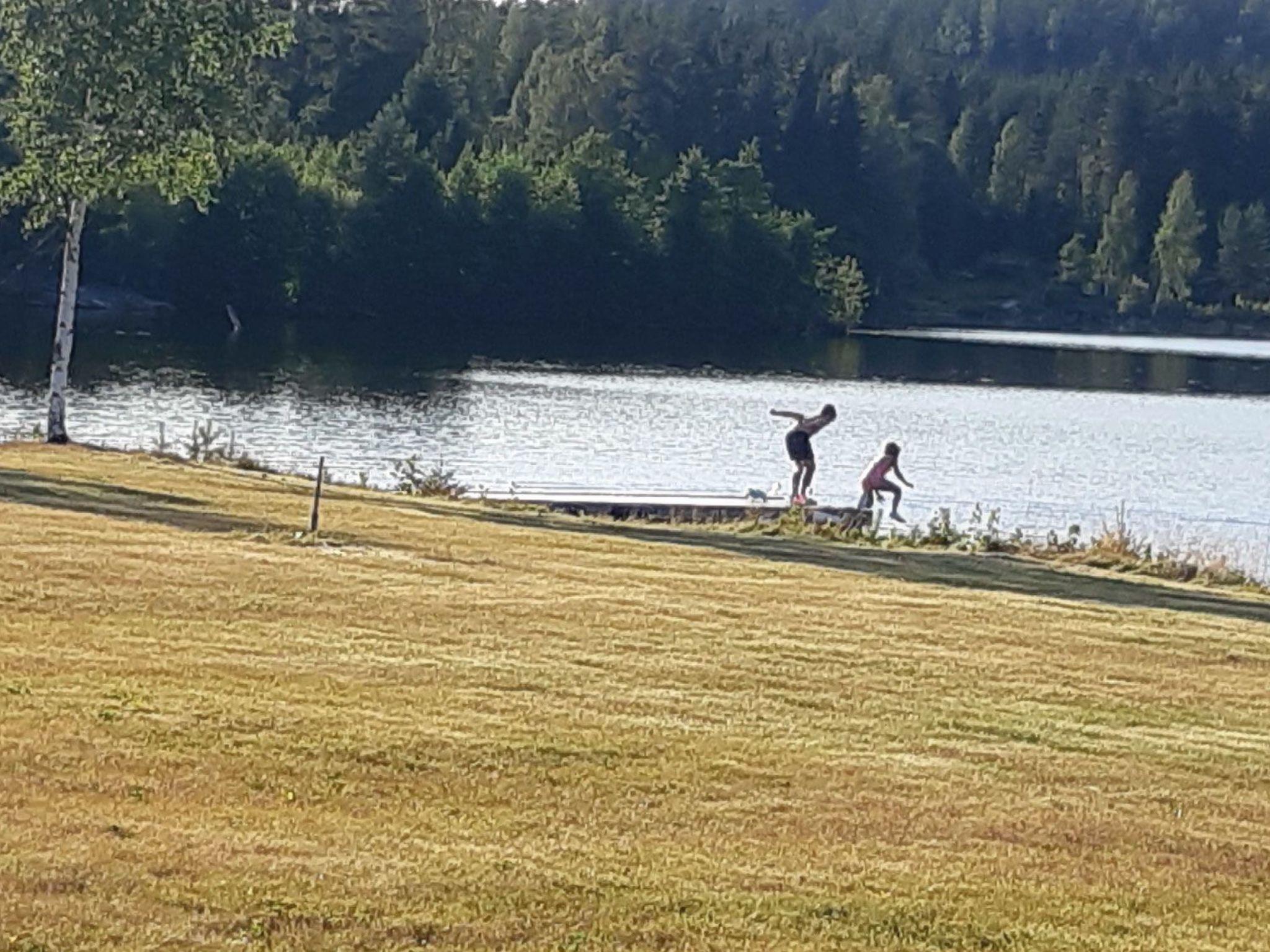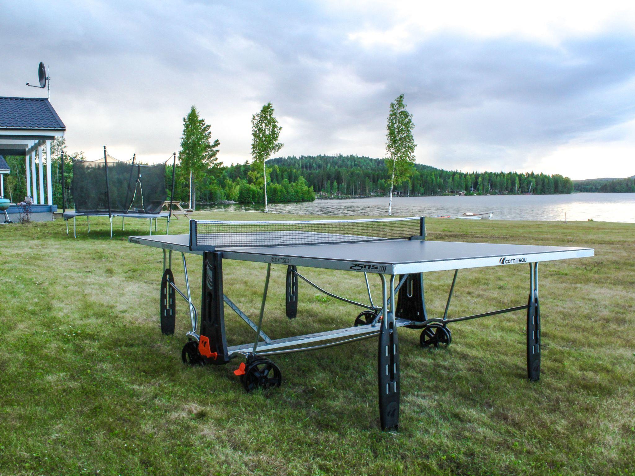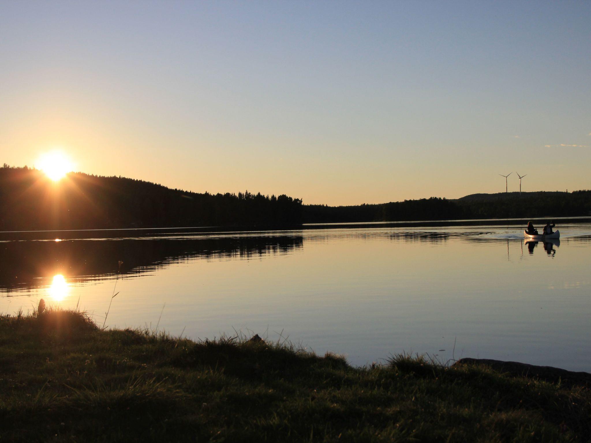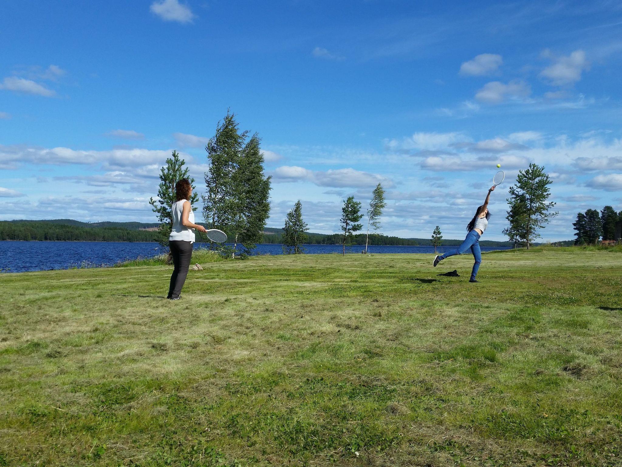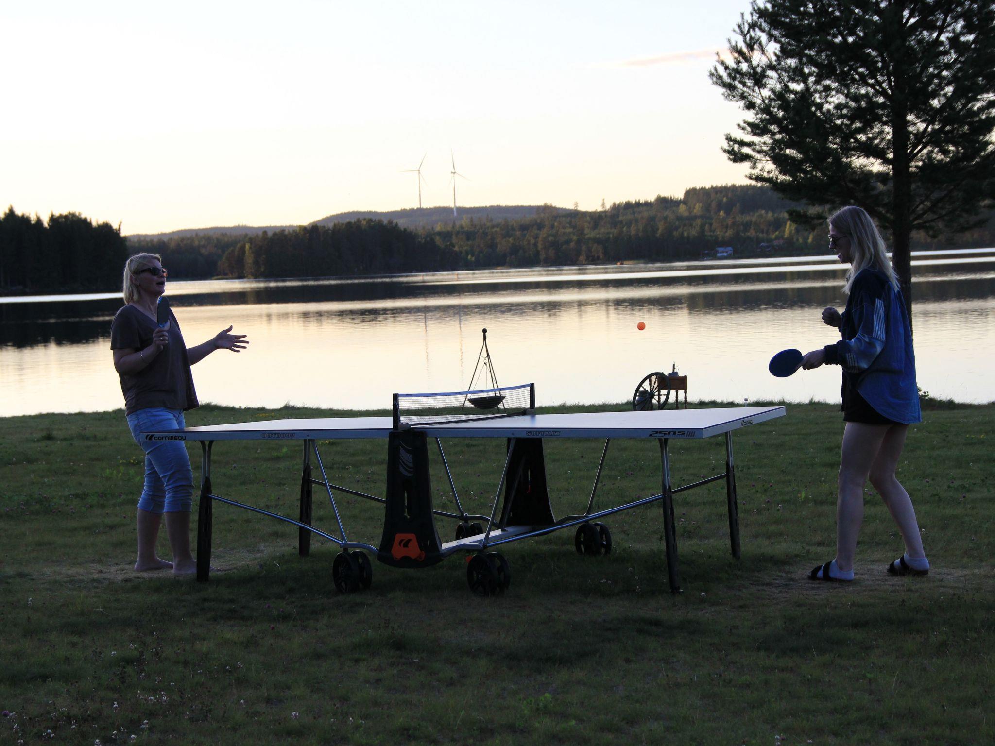 Just on the lake shore with a very large grass area around, lots of fish in the lake for fishing lovers, ramp for the boats and for sunbathing or swimming. Each house has his own picnic wooden table in front of it. Very nice and peaceful area for walking and enjoying the forest. The closest village to Svärdsjö where you can shop and dine is about 13 km far.