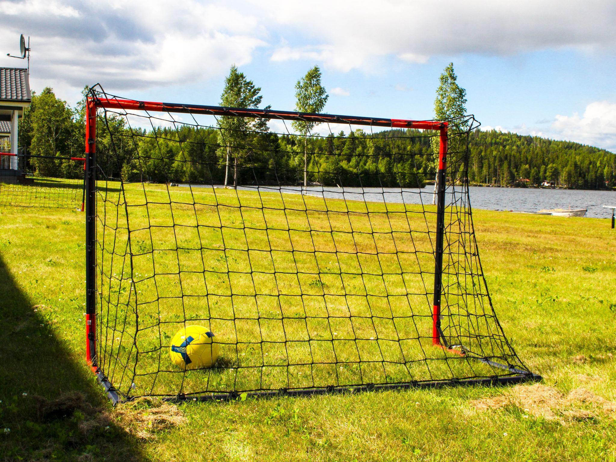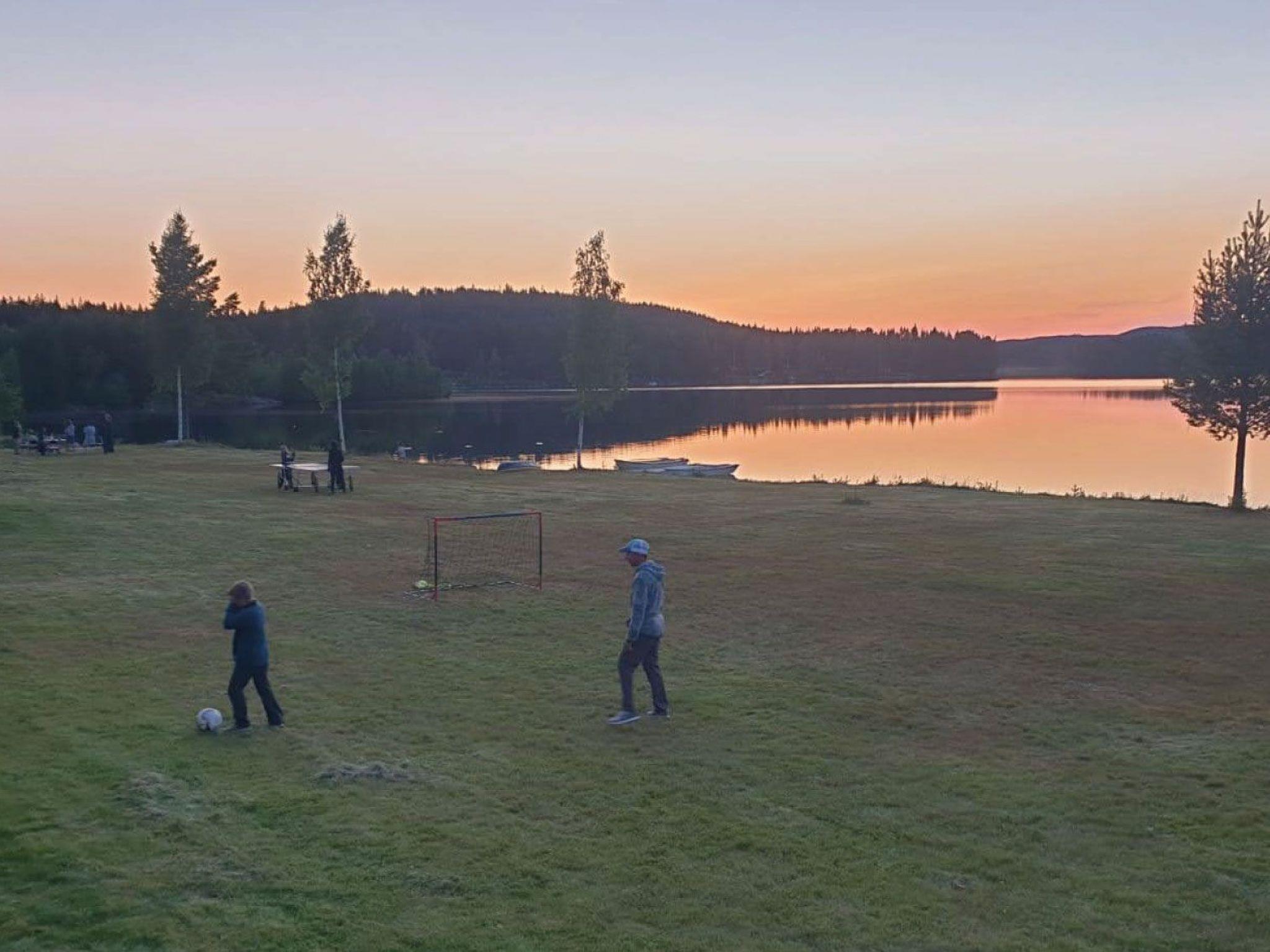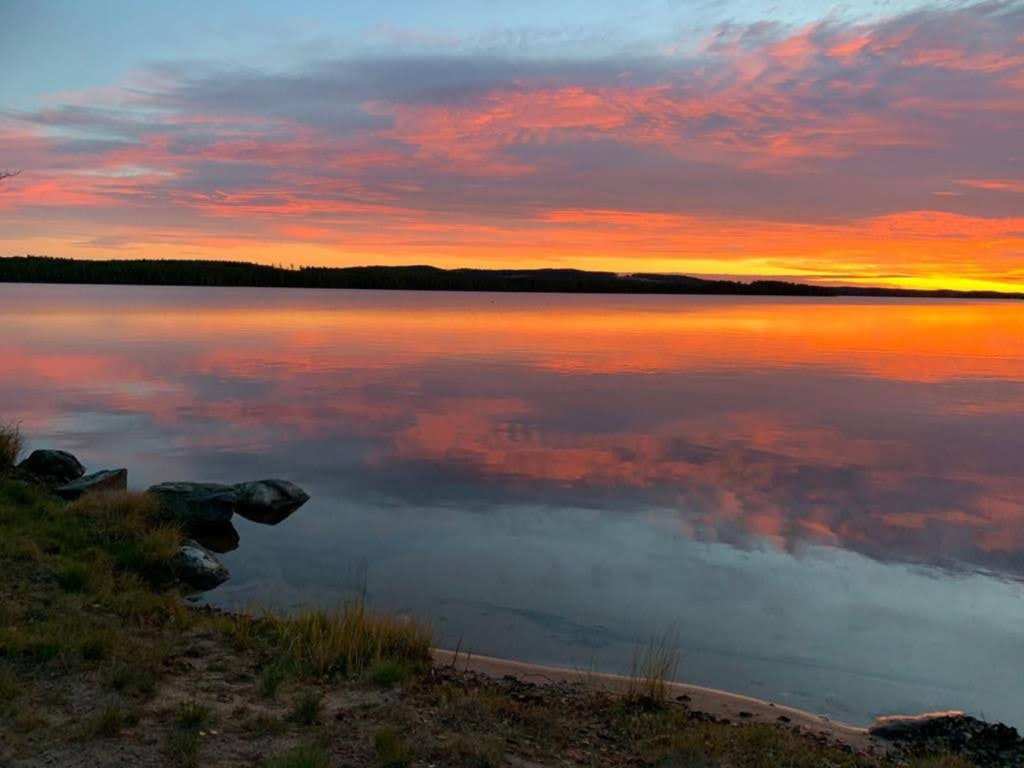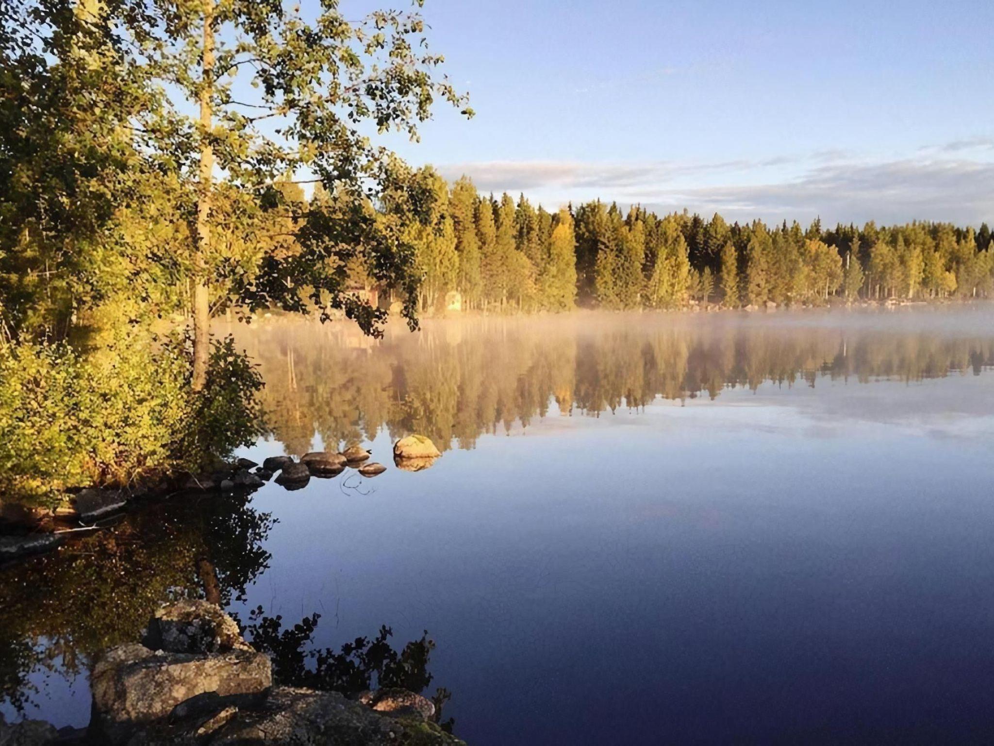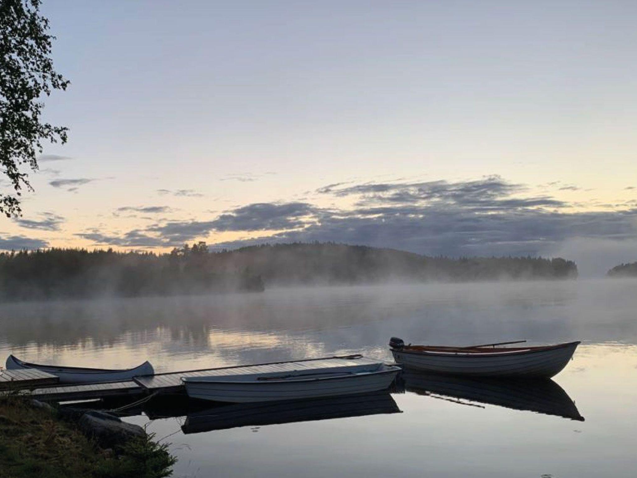 Just on the lake shore with a very large grass area around, lots of fish in the lake for fishing lovers, ramp for the boats and for sunbathing or swimming. Each house has his own picnic wooden table in front of it. Very nice and peaceful area for walking and enjoying the forest. The closest village to Svärdsjö where you can shop and dine is about 13 km far.