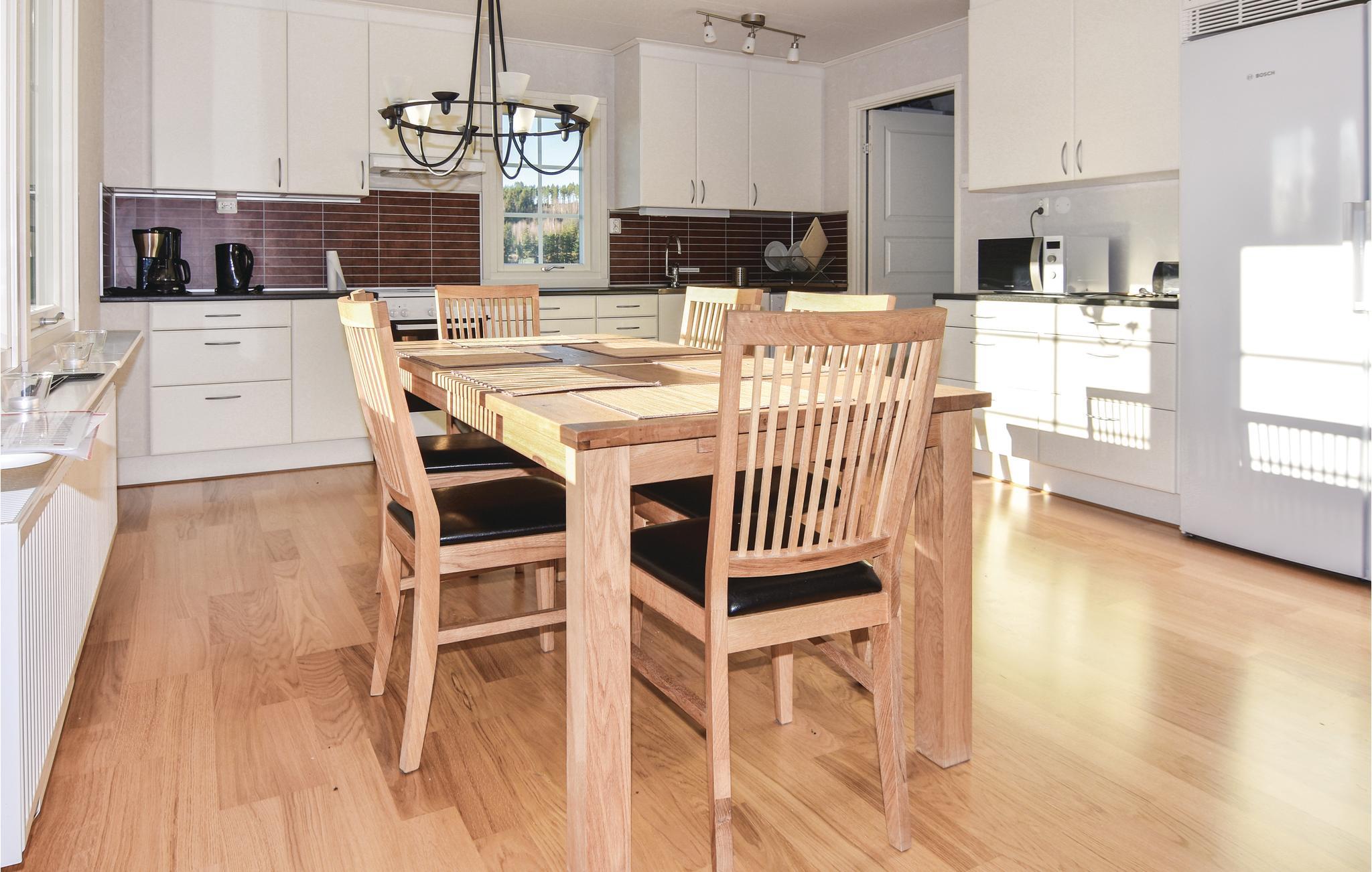 Rigtig smukt beliggende feriehus ved Trönneviken i søen Eldan i det sydvestlige Värmland. Dette vil være et paradis for naturelskere med det store antal af gode bade- og fiskesøer lige i nærheden. Skoven og naturen er rig på både flora og fauna. Her er masser af bær, svampe og vildt såsom rådyr, ræve og elge. Feriehuset er dejligt indrettet med en åben planløsning, hvor der fra de fleste værelser er udsigt over søen. Fra den store terrasse og den brændefyrede sauna er der en fantastisk panoramaudsigt. Gode senge i alle værelser og et godt udstyret køkken med opvaskemaskine. Ved husets bro ligger båden til spændende fiske- og badeture. Efter en kort gåtur kommer I til en lille fin sandstrand. 6 km fra husene S45175 og 176.