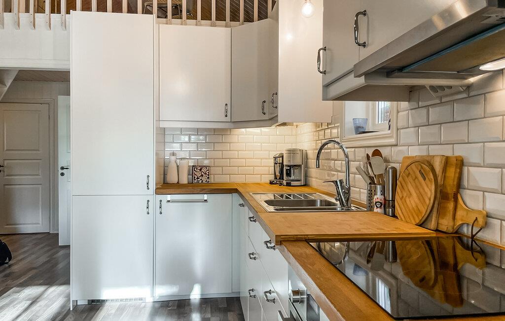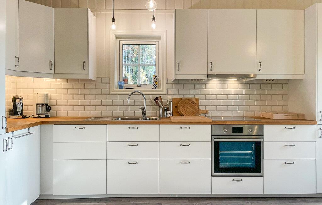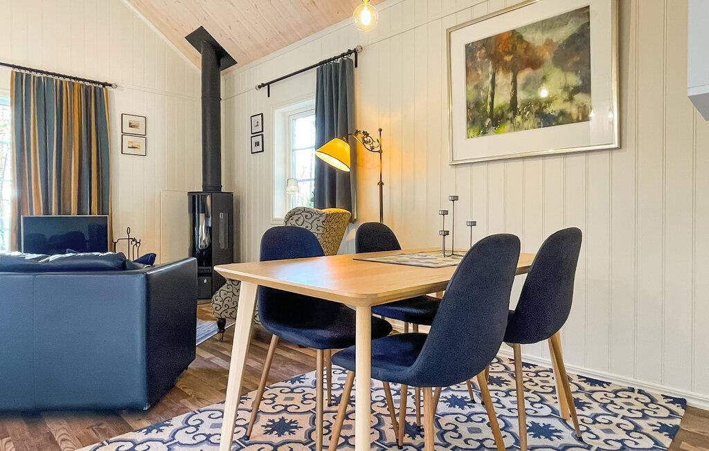 Dette komfortable feriehus byder jer velkommen midt i en rolig skovlysning og byder jer velkommen med et lyst og indbydende interiør. Nyd den moderne og smagfulde atmosfære, mens I tilbereder lækre måltider sammen og planlægger jeres eventyr gennem harmoniske måltider. Efter en lang dag i den friske luft kan I slappe af med en hyggelig spilleaften, se en film eller lytte til pejsens knitren, mens I nyder en god bog.