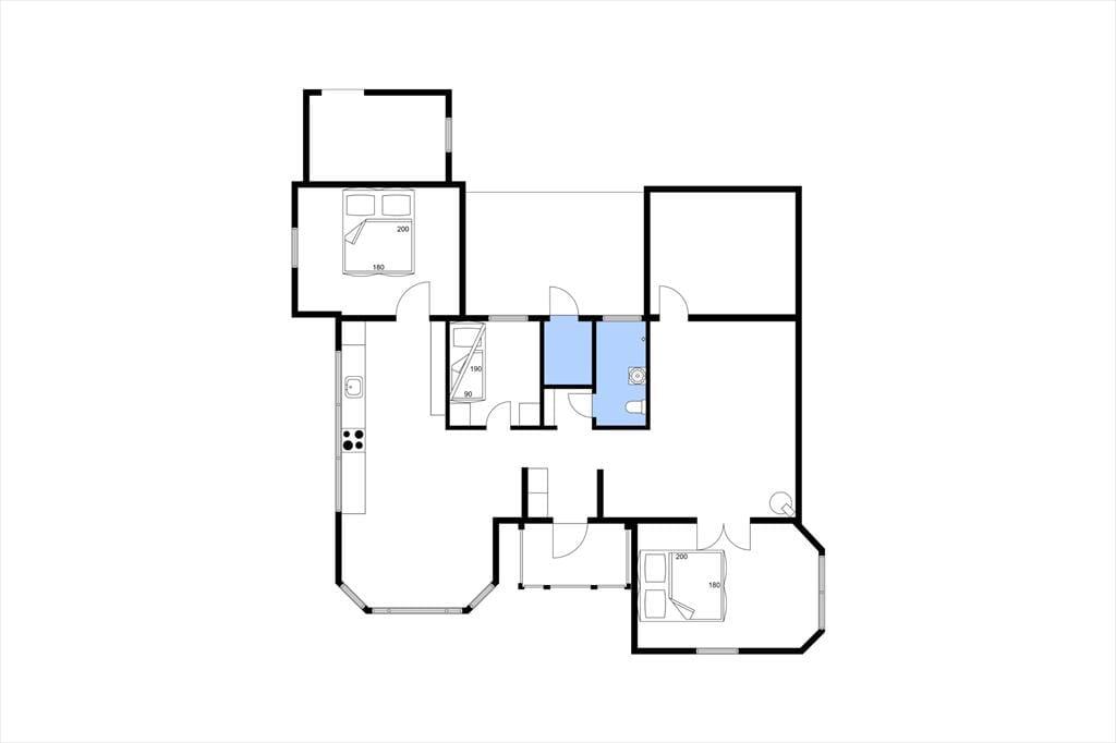 Meget velholdt og rummeligt sommerhus på cirka 100 kvadratmeter og plads til seks personer. Fra terrrassen og udestuen har man en storslået udsigt over den omkringliggende natur. Huset har en stue med bluray-afspiller, et hjemmebio-system og kamin, som kan varme hele huset op. Et stort, separat spiserum er tilknyttet det åbne køkken, som blandt andet er udstyret med komfur, opvaskemaskine og et gammelt brændekomfur. Derudover er der i huset to soveværelser med store dobbeltsenge (1,8 x 2,0 m) samt et børneværelse med køjeseng (0,9 m x 1,9 m). Badeværelset har bruser, toilet samt koldt og varmt vand , som kommer direkte fra den 50 m dybe brønd. Fra udestuen går man ud på en lædækket terrasse med havemøbler og en Weber-grill. Udover kaminen er en luft-varmepumpe samt en elradiator til rådighed. En børnerejseseng med madras kan lejes af udlejeren for 135 DKK.