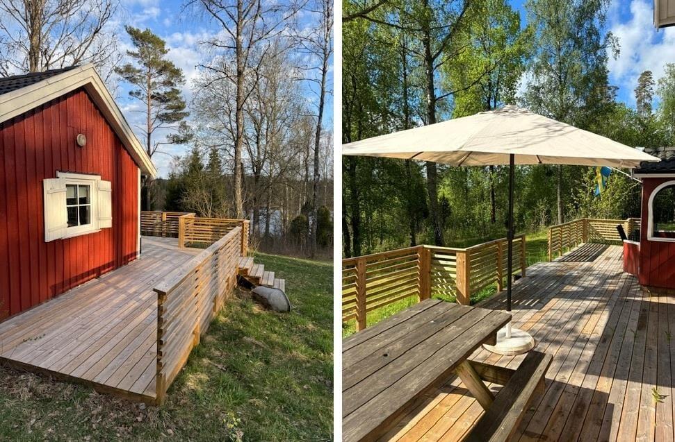Velkommen til et absolut drømmehus i nærheden af Svenljunga i regionen Västergötland. Du bor på en ca. 6.800 m² stor naturgrund med let skrånende terræn, så man fra huset gennem træerne kan se den lille sø Lilla Kvarnsjön glitre ca. 100 m væk. Den større sø Stora Kvarnsjön ligger kun ca. 500 m væk. Her finder du en bådbro med både, der kan lejes og om nødvendigt motoriseres. Den offentlige badeplads ved Stora Kvarnsjön ligger godt 900 m væk. Derudover findes der badepladser med sandstrand ved Holsjön, 8 km væk. Fødevarebutikker, restauranter, caféer og en bank findes i byen Svenljunga, 9 km væk.