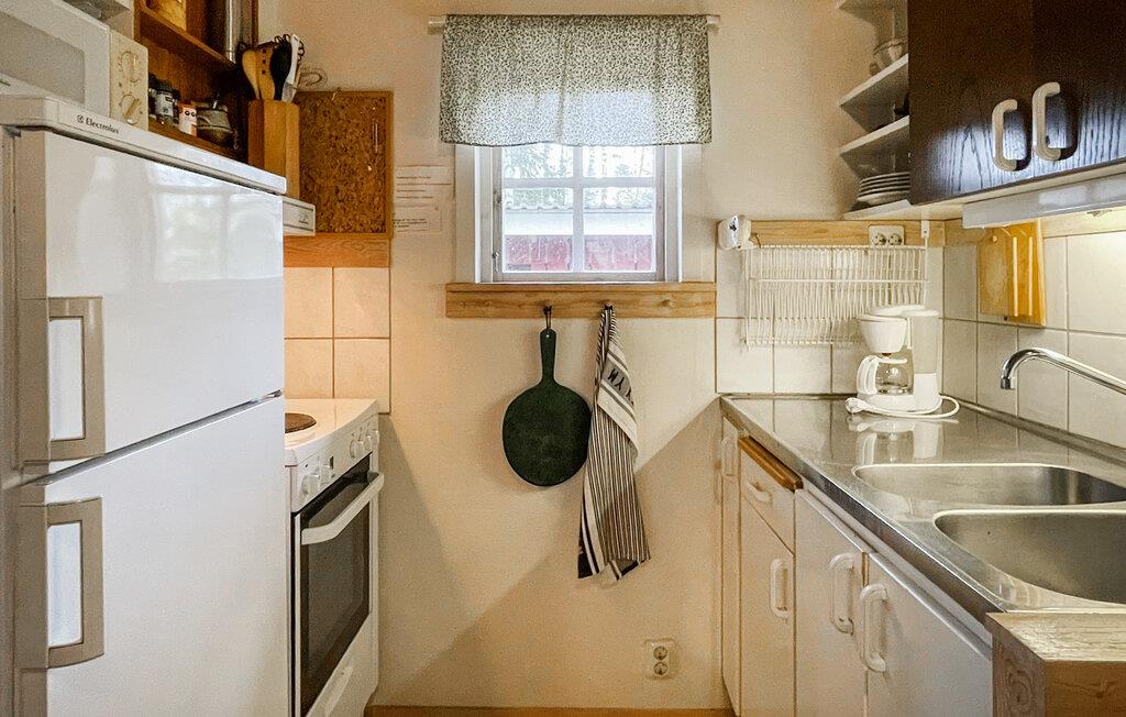 Omgivet af idyllisk natur byder dette smukke feriehus jer velkommen med et lyst og indbydende interiør. Nyd varme måltider ved det indbydende spisebord, mens brændeovnen knitrer sagte, planlæg jeres udflugter, og find sammen til hyggelige spilleaftener efter en lang dag i den friske luft.