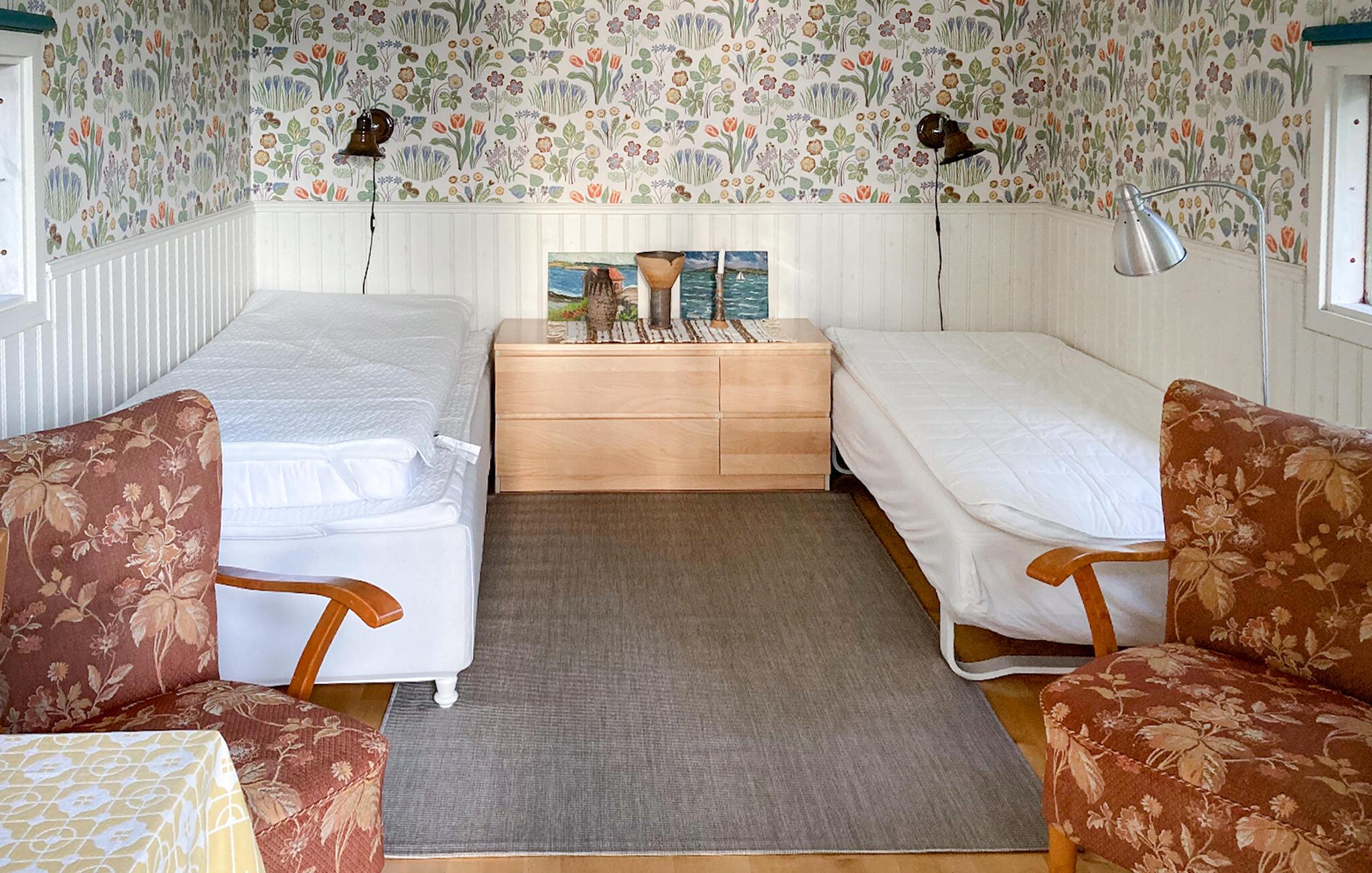 Oplev stilheden, roen og de smukke omgivelser ved Säbysjön og i regionen omkring Tranås. Den praktiske, men hyggelige indretning med blomstret tapet, høje vægpaneler og antikke møbler skaber en skøn ferieidyl, så I kan komme ned i gear og få tankerne væk fra hverdagens travlhed. I den større hytte finder I et veludstyret køkken samt bord og stole.