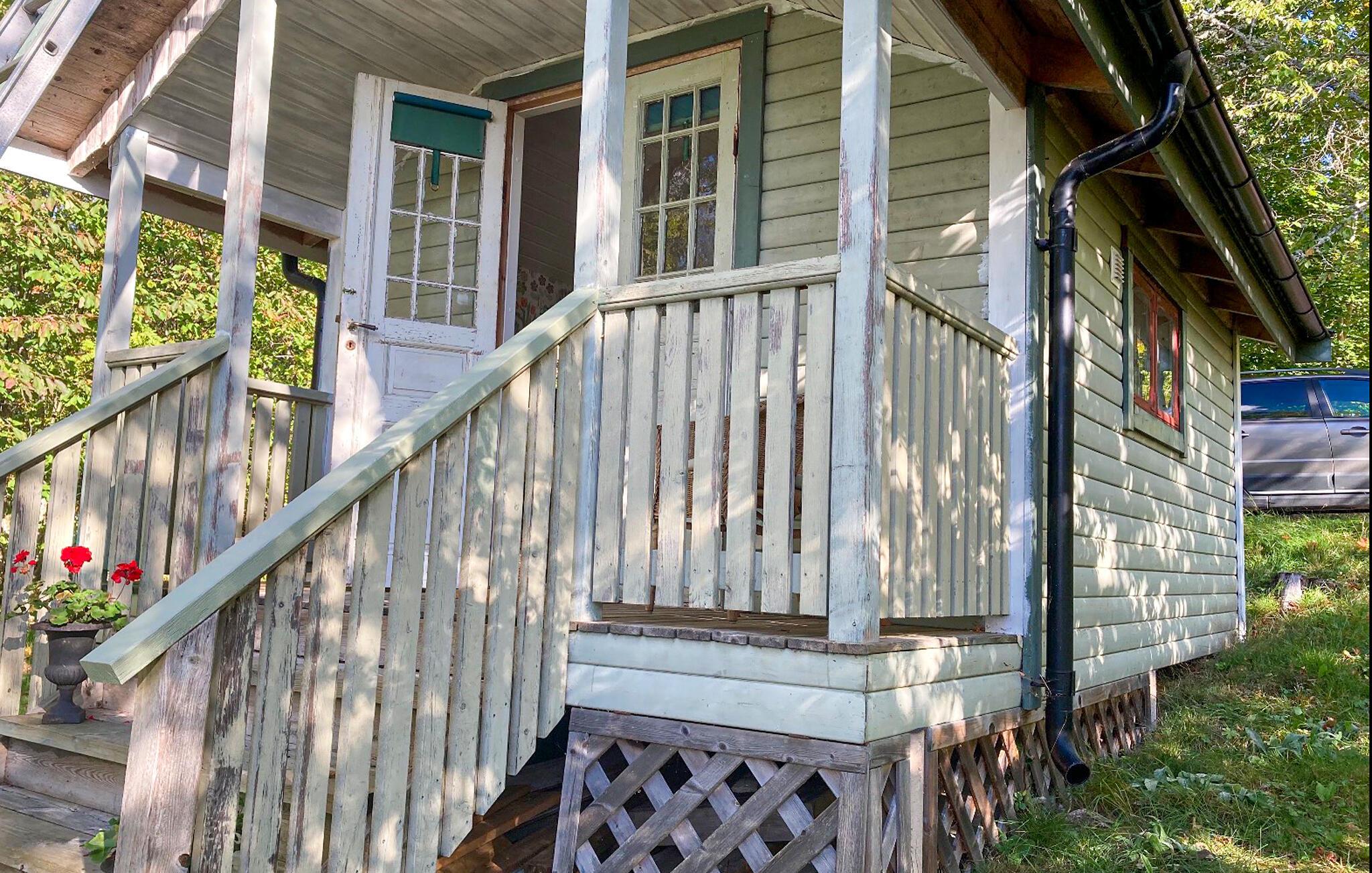 Dette smukke og praktiske træhus med veranda byder jer velkommen på bredden af Säbysjön.