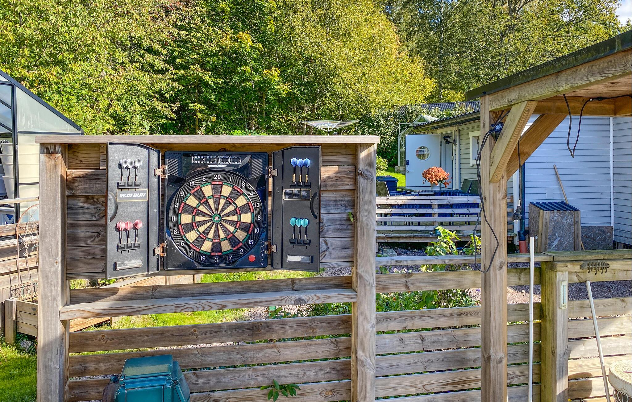 Nyd en afslappende ferie i dette hyggelige feriehus i den maleriske kommune Tranås. Dette charmerende hus giver jer et roligt tilflugtssted med talrige bekvemmeligheder, der sikrer både afslapning og underholdning. Begynd dagene på den rummelige terrasse, som er ideel til morgenmad i det fri. Spisebordet og de komfortable siddepladser gør terrassen til det perfekte sted til hyggelige timer under åben himmel.