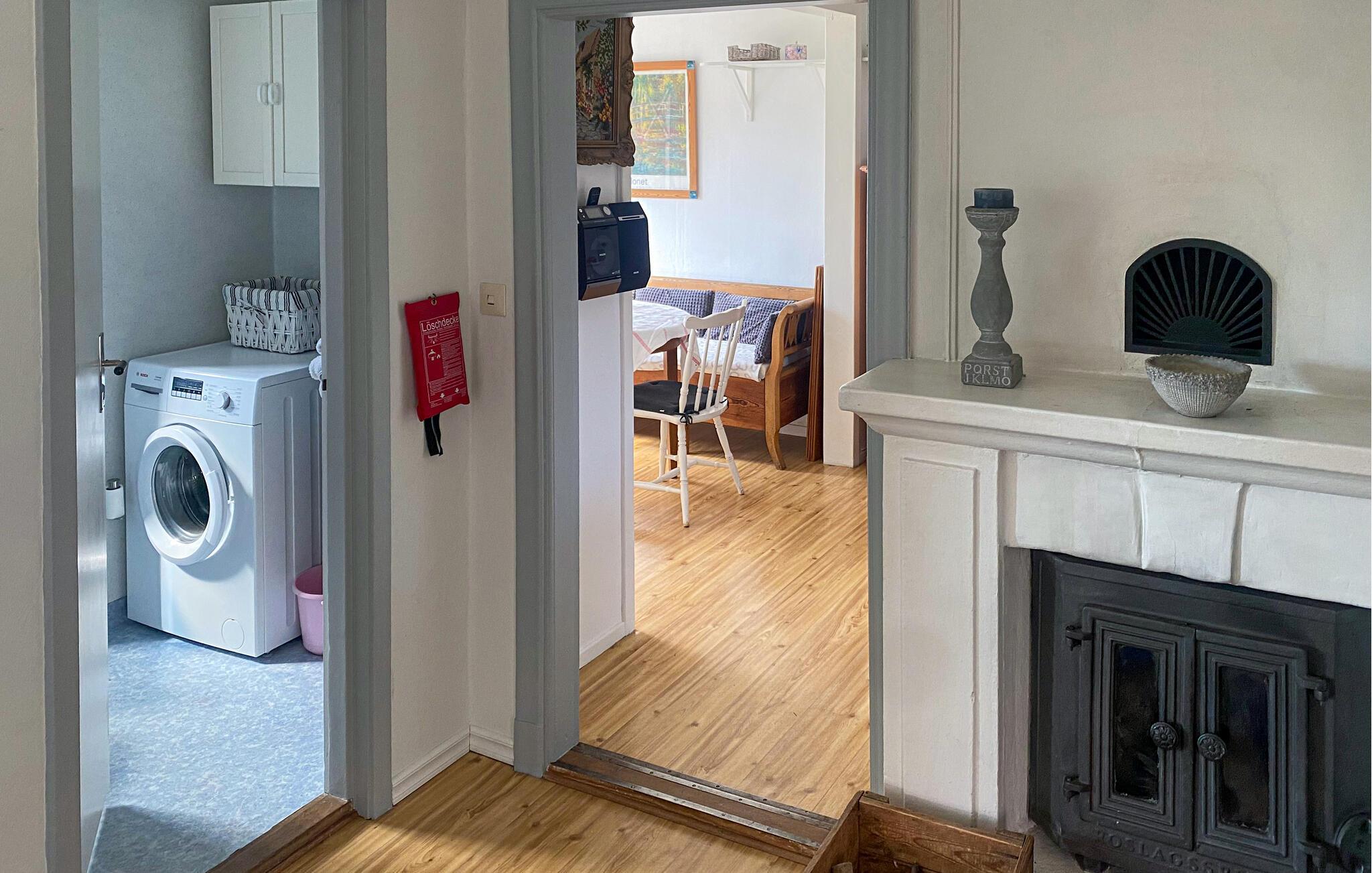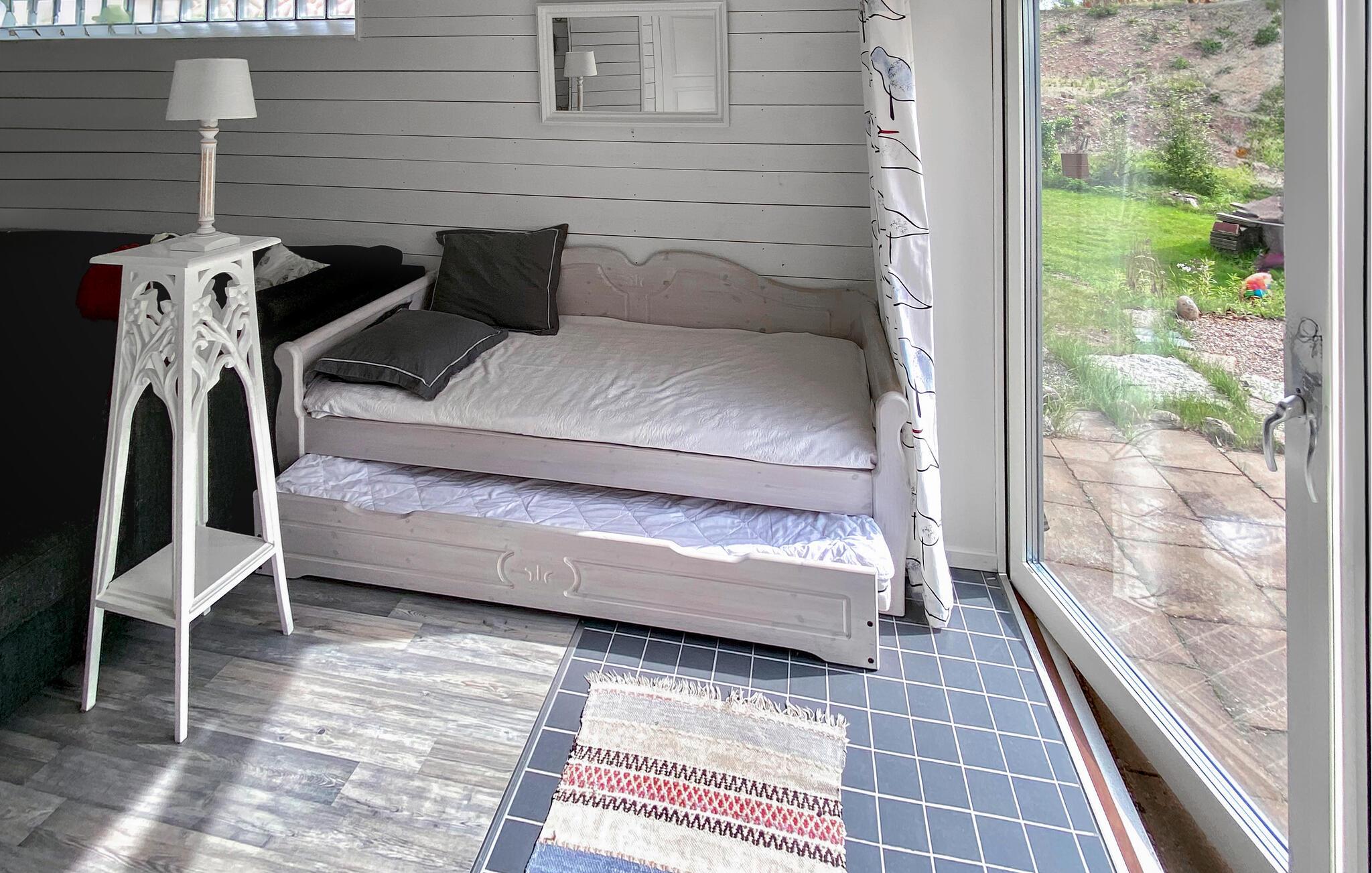 Disse idylliske naturomgivelser ved bredden af ??Sommens sø tilbyder ikke kun en malerisk kulisse, men også utallige muligheder for afslappende dage i naturen. Begynd dagene med en kop kaffe på den rummelige terrasse, mens I nyder panoramaudsigten over den fortryllende sø, der udstråler en fredfyldt ro. eller tag en forfriskende dukkert direkte fra jeres private badebro. Brug det charmerende vintagekøkken til fælles madlavningsoplevelser og spis sammen ved spisebordet med udsigt over søen. Husets vidtstrakte grund lægger op til aktiv rekreation. Slip løs på den store naturgrunds mange legepladser og nyd et spil Kubb sammen. Terrasserne er de perfekte rammer for grillmiddage eller blot for at nyde naturens fred og ro.