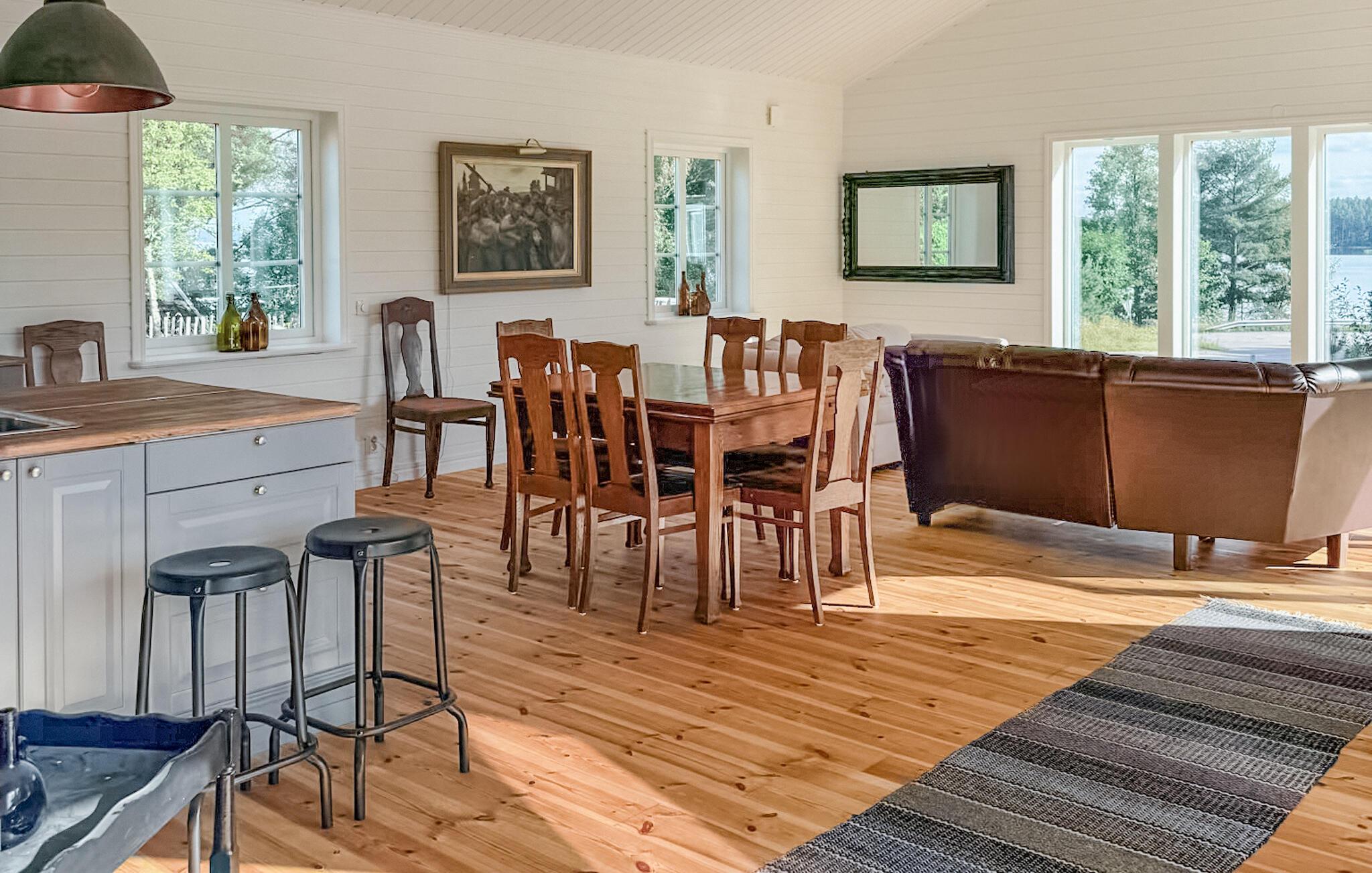 Ejendommen grænser op til søen – snup en frisk dukkert i det klare, rolige vand lige efter at have vågnet og server jer derefter en solid morgenmad på terrassen. Prøv lykken med at fiske og tænd op i grillen.