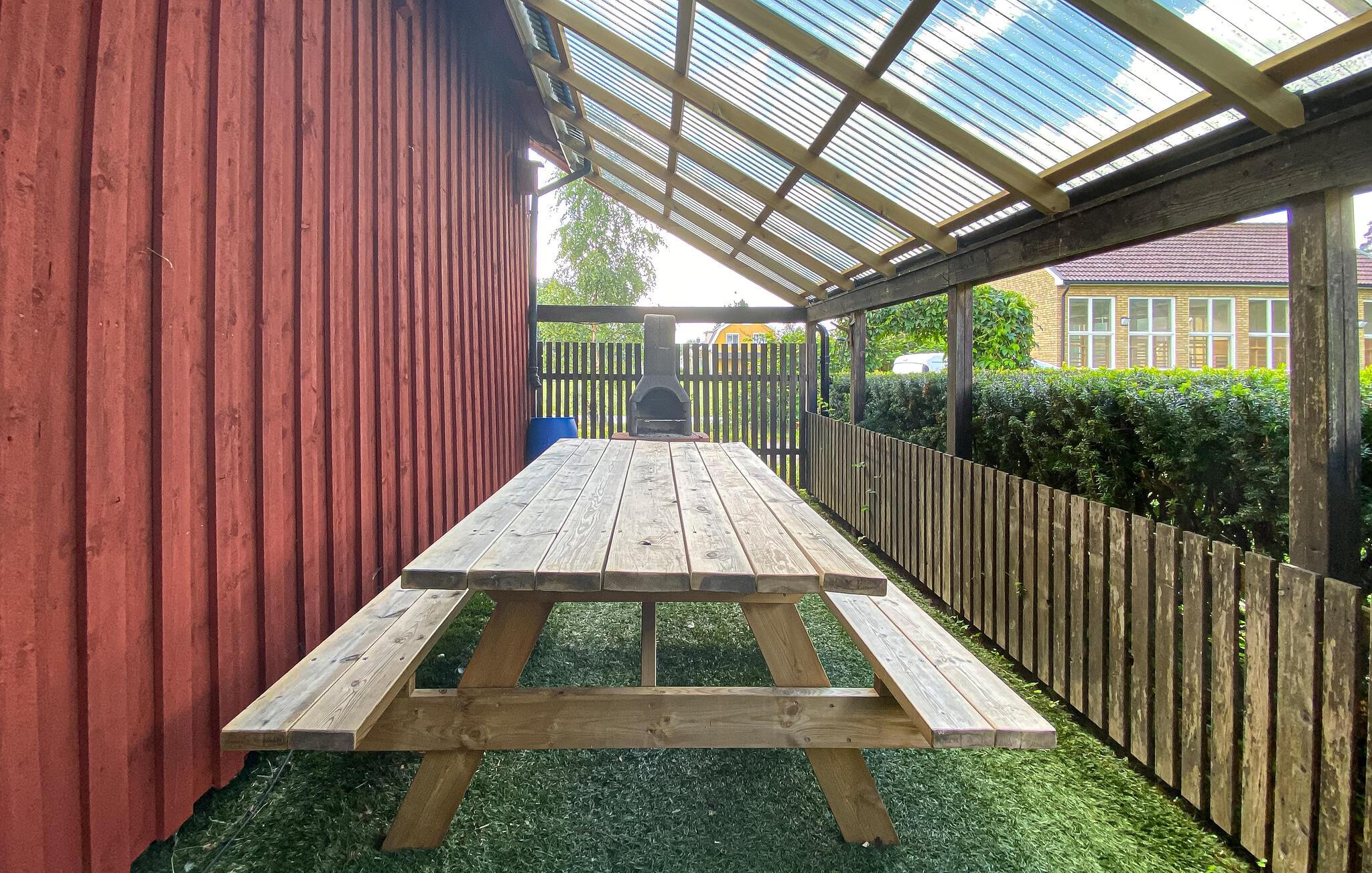 Tilbring en afslappende ferie i dette malerisk beliggende feriehus. Dette charmerende hus byder jer velkommen med en komfortabel og hyggelig atmosfære, hvor I hurtigt kan slappe af og genoplade batterierne. Et elegant sofasæt, en herskabelig kakkelovn og gennemtænkte detaljer skaber tilsammen en harmonisk helhed. Hyg jer med kaffe og kage, eller tryl lækre måltider frem i det praktiske køkken. Gå ud i den store, grønne have med en kop kaffe om morgenen og nyd naturens ro. Under den overdækkede terrasse finder I et overdækket sted til en lækker morgenmad og planlæg næste dags aktiviteter. Om aftenen kan I samle familien eller vennerne omkring grillen og afslutte dagen med et glas vin. Oplev forfriskende sommerdage ved de smukke badesteder ved søerne, der ligger meget tæt på jeres feriehus. Oplev de skovklædte omgivelser på lange vandreture eller afslappende spadsereture i naturen. Nyd freden og roen, fuglenes kvidren og den friske luft, langt fra hverdagens travlhed. Uanset om I vil slappe af eller være aktive, finder I i Sjötofta den ideelle blanding af natur og afslapning.