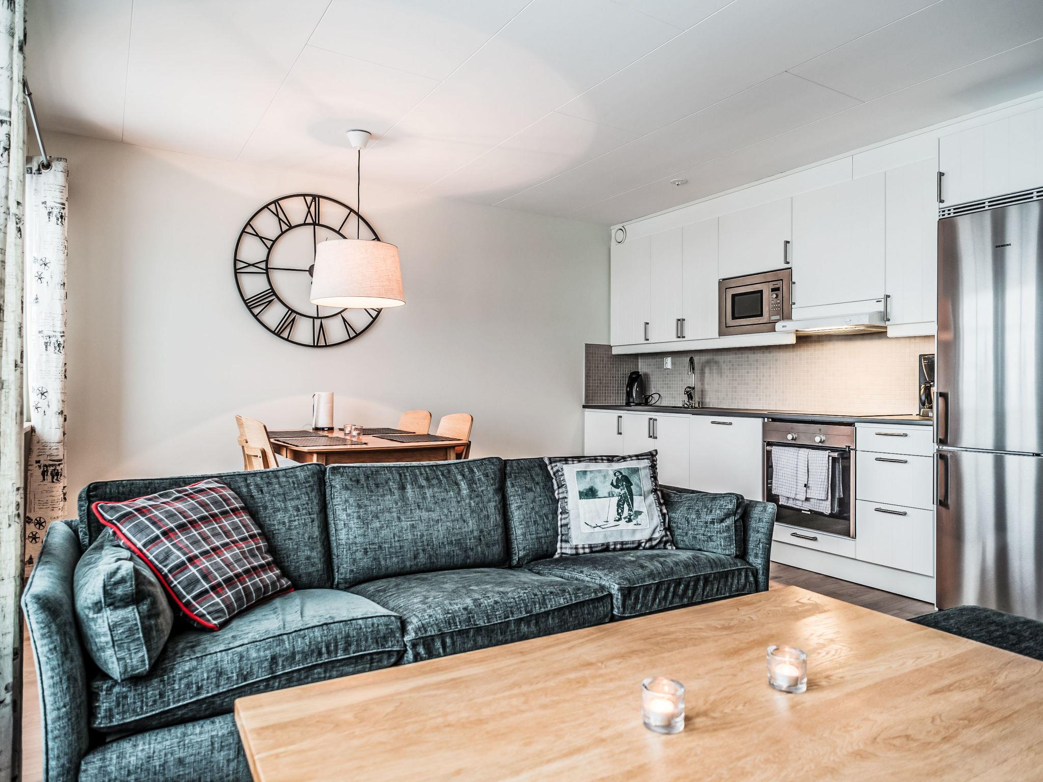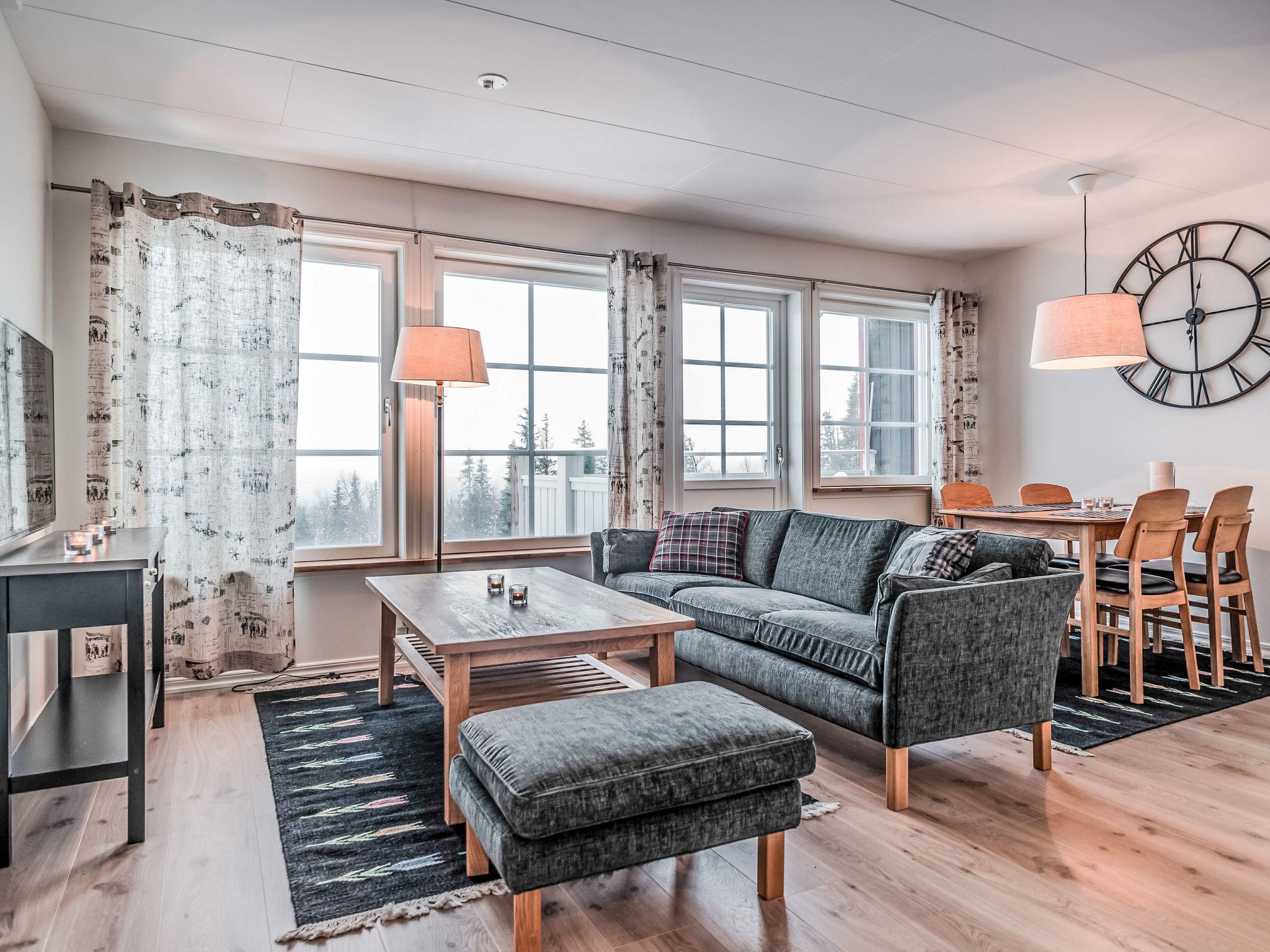 "Trillevallen 3", 3-room apartment. Bright, modern and tasteful furnishings: open living/dining room with dining table and TV. Exit to the balcony. 1 room with 1 double bed. 1 room with 2 beds. Open kitchen (oven, dishwasher, 4 ceramic glass hob hotplates, toaster, microwave, freezer, electric coffee machine). 2 showers/WC, Sauna. Balcony. Very beautiful view of the mountains and the forest. Facilities: washing machine. Internet (WiFi, free). Please note: non-smoking house. Maximum 1 pet/ dog allowed. Smoke alarm, fire extinguisher.