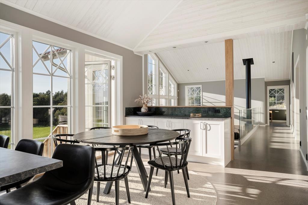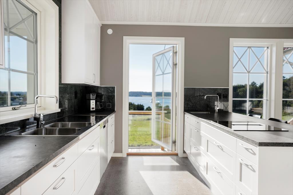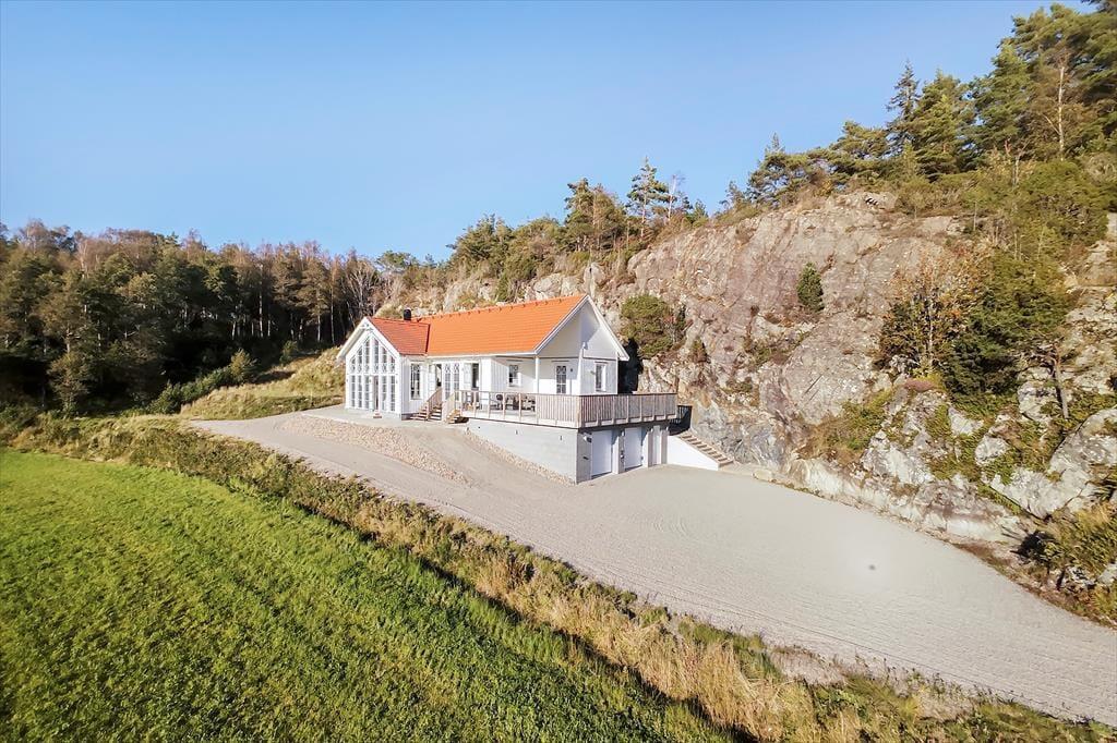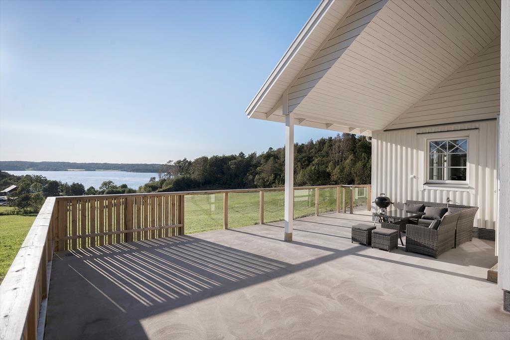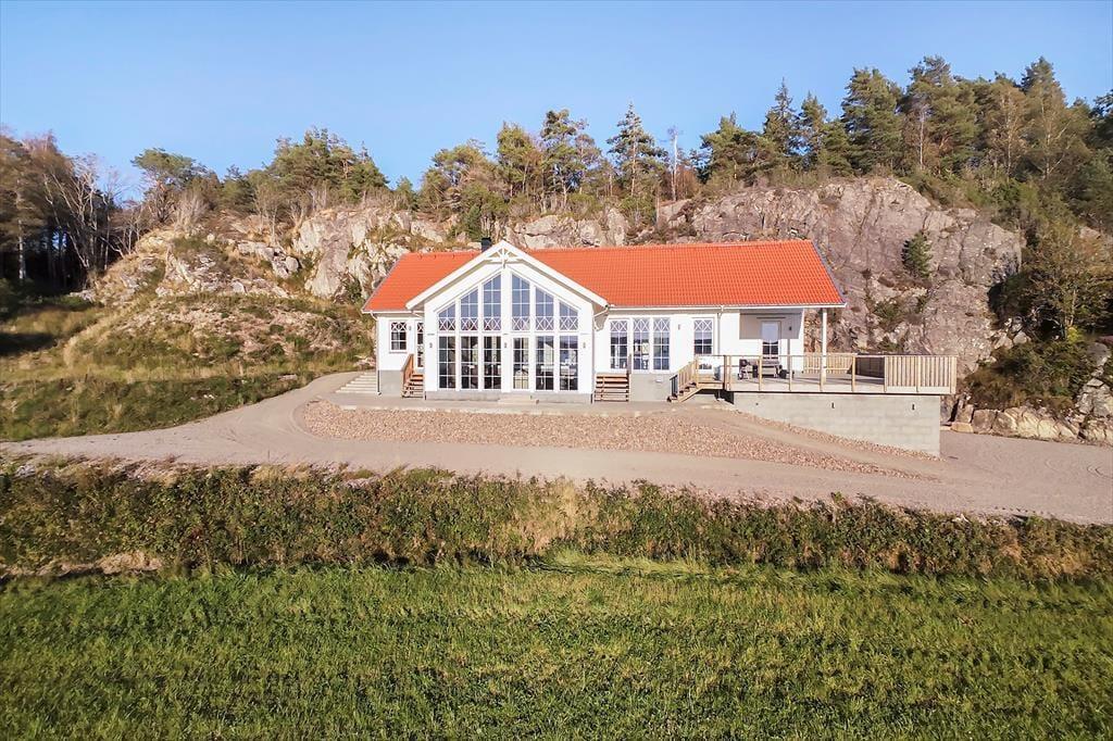 På Bokenäs, en halvø vest for Uddevalla, midt i det maleriske øhav nord for Göteborg, ligger dette nybyggede, moderne feriehus med en vidunderlig panoramaudsigt over Gulmanfjorden, som ligger blot 400 meter væk. De bedste bademuligheder i området er badebroen ved marinaen i Jordfallsbukten, som ligger knap 2 km væk, Hällebäck, som ligger ca. 4 km væk, og Hafsten Resort, som ligger ca. 13 km væk. Dagligvare kan du købe i Rotviksbro, ca. 8 km væk, hvor der også er en meget god restaurant, Stallgården. Eller lidt længere væk, til Torp indkøbscenter ved Uddevalla-motorvejsafkørslen, ca. 15 km fra huset.