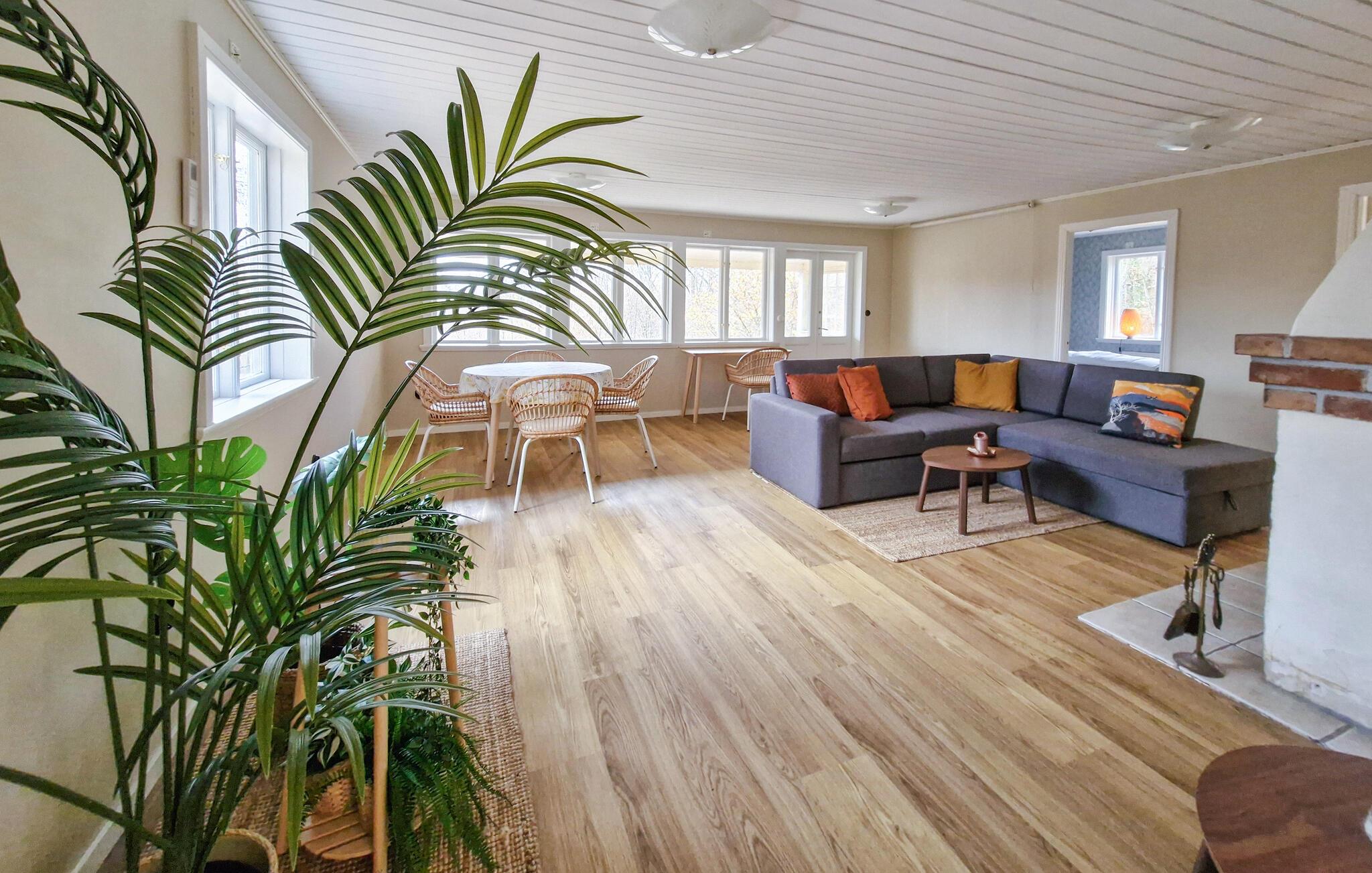 Tilbring en afslappende ferie i dette hyggelige feriehus omgivet af natur. Dette hus er det ideelle tilflugtssted for en afslappende pause fra hverdagen. Varme trædetaljer, en behagelig sofa og en brændeovn skaber en atmosfære, hvor I hurtigt kan slappe af. Tilbered lækre måltider sammen og nyd dem med et glas vin, mens ilden knitrer sagte i pejsen. Start dagen i den store, grønne have og lyt til naturens lyde. Nyd en afslappet morgenmad, mens I kigger ud over det maleriske landskab. Find et solrigt sted at læse, inden I tænder grillen om aftenen og afslutter dagen med en hyggelig grillfest. Oplev roen i Ullstorp, hvor jeres feriehus ligger i hjertet af et naturreservat. Oplev regionens forskellige vandrestier, herunder den berømte Skåneleden, eller besøg Fulltofta Strövområde, et sandt paradis for naturelskere og cyklister. Tag en tur til den nærliggende Skånes Djurpark eller nyd den charmerende lille by Höör med dens butikker og hyggelige restauranter.