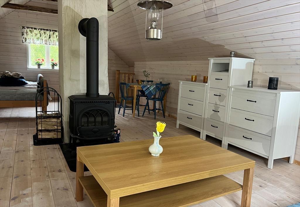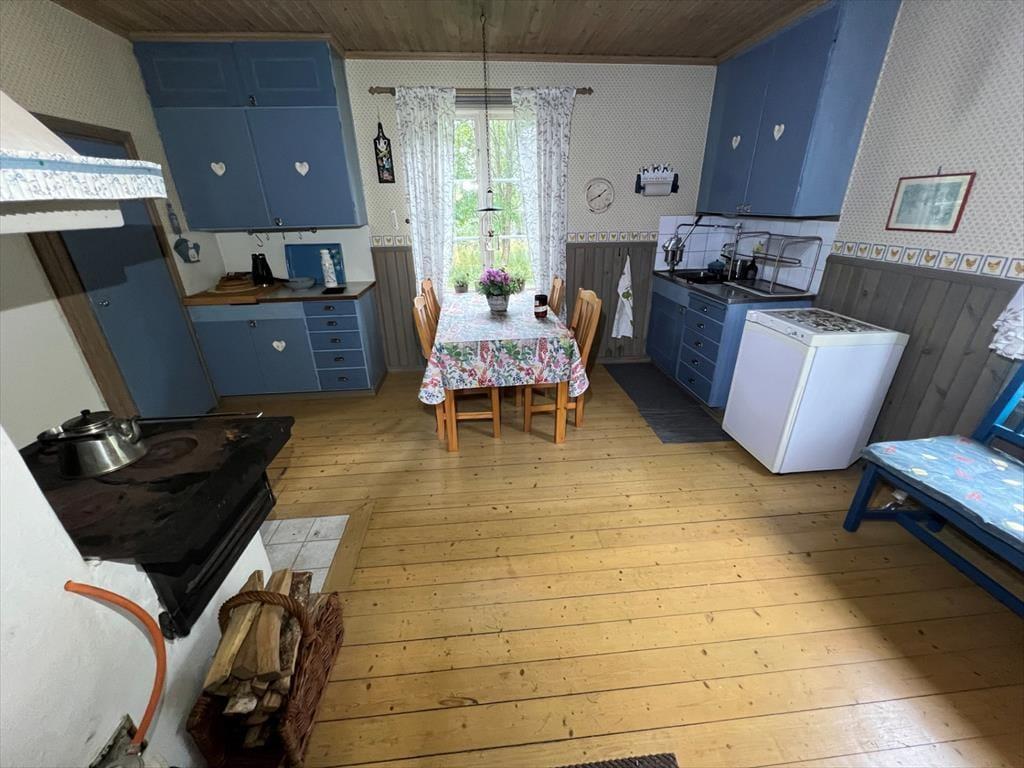 Det traditionelt indrettede sommerhus fra 1908 byder på cirka 75 m² bolig – enkelt, rustikt og naturnært. For gæster, der kan undvære elektricitet og søger den ægte svenske oplevelse, er dette sommerhus et rigtigt insidertip. Køkkenet er udstyret med gaskomfur, brændeovn, gas-køleskab og en vask med rindende koldt vand – alt i naturens ånd. Den hyggelige opholdsstue har en åben pejs, siddehjørne og en sovesofa. På sovehemsen er der tre enkeltsenge og endnu en sovesofa til to personer. Det separate gæstehus (ca. 12 m²) tilbyder endnu en sovesofa til to personer.