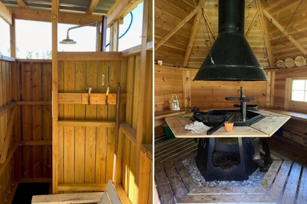 Udendørs er der meget at opleve: en overdækket veranda, havemøbler, grill, stor græsplæne, et legehus til børnene, en udendørs koldtvandsbruser og et traditionelt tørkloset i et separat hus. Et rustikt højdepunkt er den finske grillkota, som indbyder til hyggelige aftener ved ilden. Drikkevand hentes friskt fra brønden. Fire cykler kan eventuelt lånes efter aftale. Parkering findes lige ved huset.