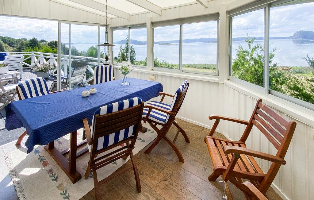 Oplev en skøn ferie i dette feriehus ved havet, som imponerer med en fantastisk udsigt. jeres sommerhus i Utby ved Uddevalla lægger op til et afslappende ophold i Sverige. Den hyggelige indretning og den imponerende udsigt over det omkringliggende landskab skaber en hyggelig atmosfære, hvor I straks vil føle jer hjemme. Start jeres dag med morgenmad i den lyse opholdsstue og nyd udsigten fra vinduet. Mens børnene leger i haven, har I tid til at slappe af og lægge jeres planer for dagen. Takket være det åbne design af køkken, spisestue og opholdsstue kan I tilbringe timer sammen med familien. Den rummelige stue byder på komfortable sofaer, der er ideelle til selskabelige aftener med brætspil eller hyggelige læsetimer. Om eftermiddagen kan I drikke en kop kaffe i husets smukke vinterhave. Kun få minutters gang adskiller jer fra havet. Uanset om I fisker eller et forfriskende hop i det klare vand, finder I her ideelle betingelser for afslappende dage på stranden. Tag en tur til centrum af Uddevalla, som har et udvalg af butikker, caféer og restauranter. Forkæl jer selv med lokale specialiteter og opdag de kulinariske lækkerier i Sverige. Kulturinteresserede bør besøge Bohusläns Museum, som giver spændende indblik i regionens historie og natur.