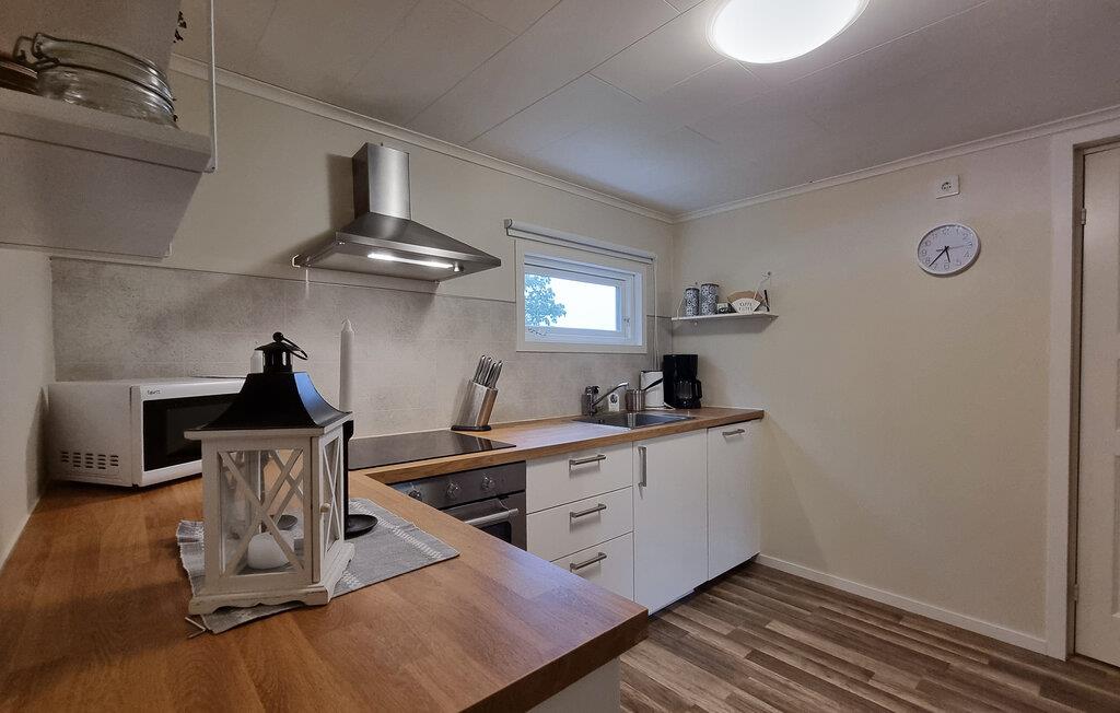 Efter en aktiv dag i naturen kan I slappe af i feriehusets hyggelige stue. Gør det behageligt for jer på den komfortable sofa foran den varme brændeovn, og lad dagen slutte med en god bog eller et glas vin.