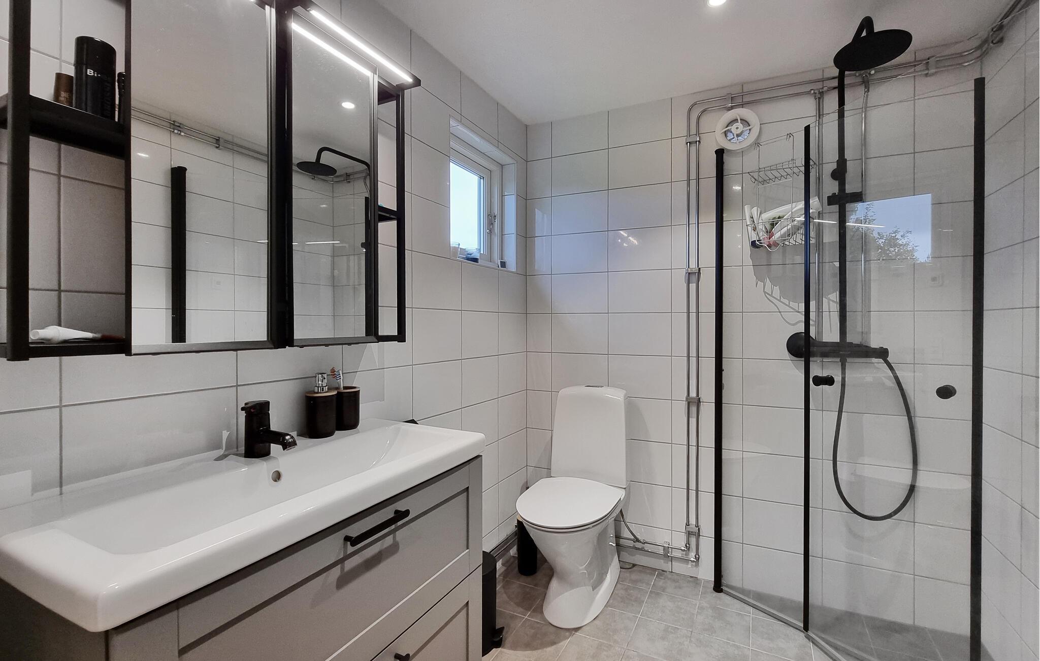 Badeværelse (nr. 1) - WC. Varmt og koldt vand. Bruser