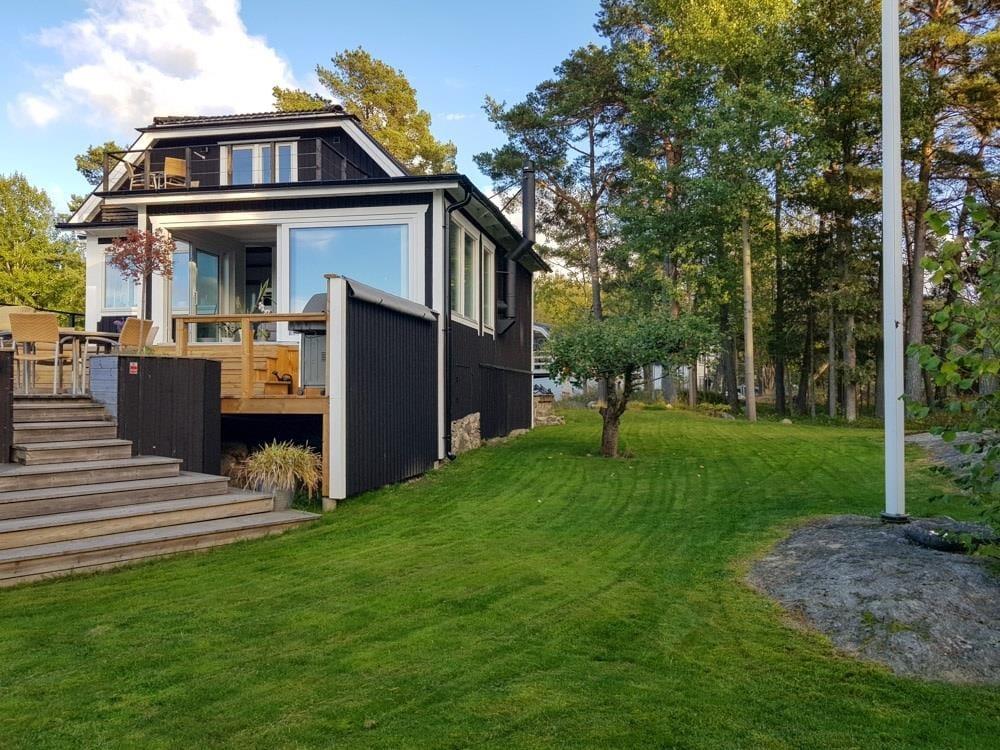 Har du altid drømt om at udforske Stockholm og samtidig bo idyllisk med din familie på en skærgårdsø? Så tilbyder dette sommerhus lige uden for Stockholm jer alt, hvad I behøver for at nyde en fantastisk ferie.Kun 30 km fra Stockholms centrum ligger dette skønne sommerhus på øen Värmdö i skærgården, omgivet af fredelige skove og hav. Huset er placeret på en 1.700 m² stor naturgrund. Den første mulighed for at bade i havet finder du efter cirka 350 m, en børnevenlig badeplads efter cirka 700 m og den kommunale strand “Grisslinge Havsbad” ligger cirka 1 km væk. Den nærmeste nabo befinder sig 100 m fra huset, og landevejen ligger cirka 90 m væk. Indkøb kan klares cirka 700 m fra huset, og større indkøbsmuligheder findes i Stockholms udkant cirka 15 km væk.