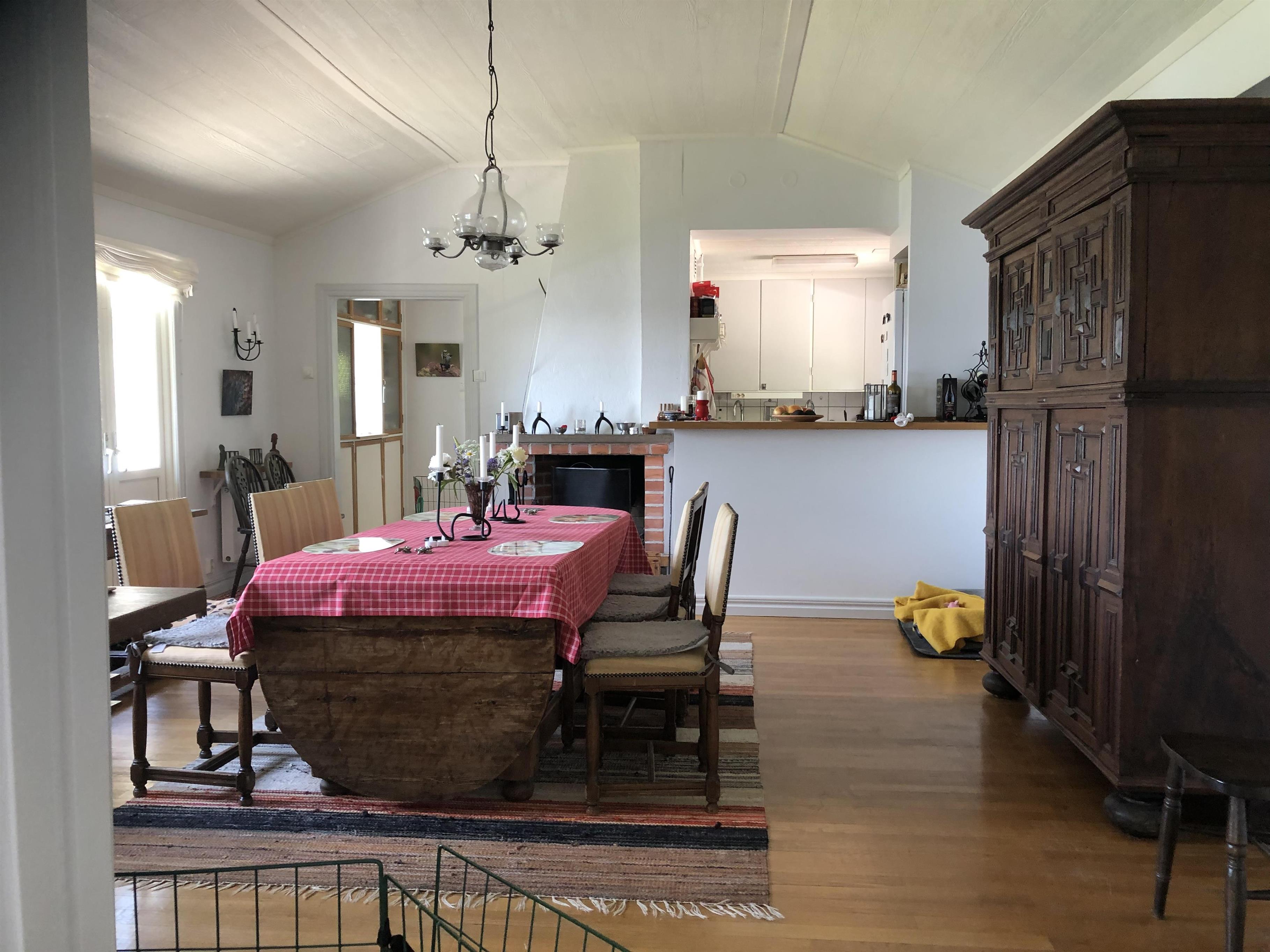 Hovedhuset har store stuer, 2 åbne pejse og en stor veranda (16 m2) mod vest, så I kan nyde de skønne solnedgange. Her kan I rigtig hygge jer på alle årstider. Her er et komplet udstyret køkken med alt, som I kan tænkes at få brug for og der er desuden et tekøkken i gæstehuset. I hovedhuset er der i alt 3 sovepladser og i gæstehuset er der hele 5 senge i 3 soveværelser (1 dobbeltseng, 1 enkeltseng og en køjeseng med to sovepladser). I hovedhuset er der et badeværelse med brusebad og toilet og desuden et separat toilet. Et af værelserne i hovedhuset er aflåst, idet ejeren opbevarer sine personlige ejendele her.